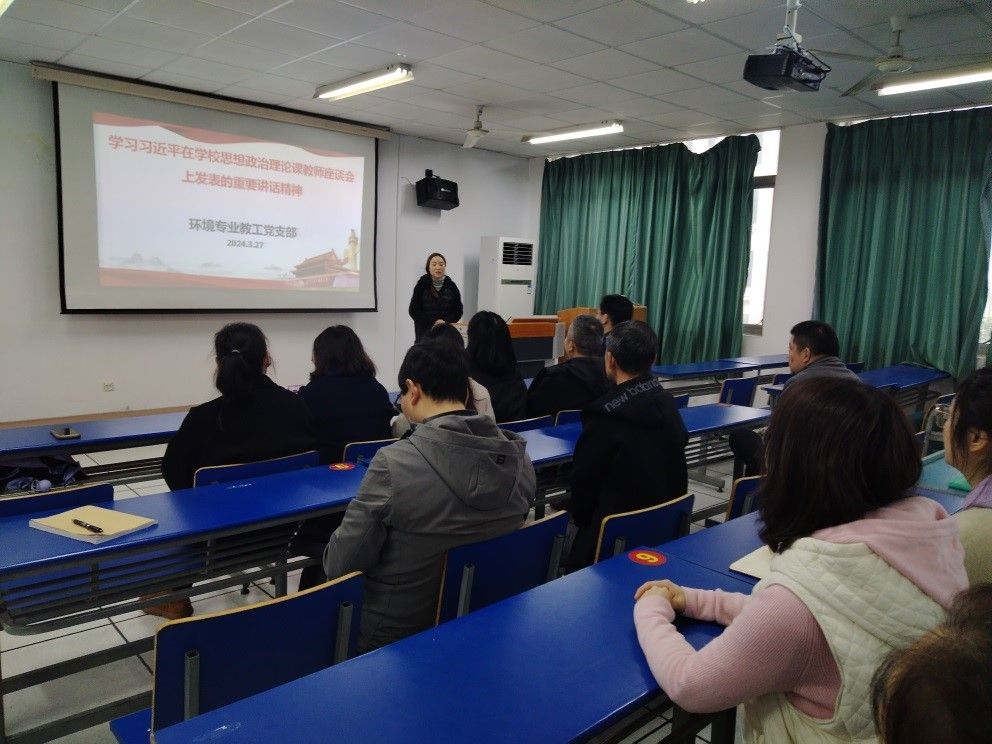 3月27日下午,环境专业教工党支部在公司实验楼201教室召开支部大会,支部书记陶海升作题为“学习习近平总书记在公司思想政治理论课教师座谈会上的重要讲话精神”的专题党课,支部全体党员参加了会议。