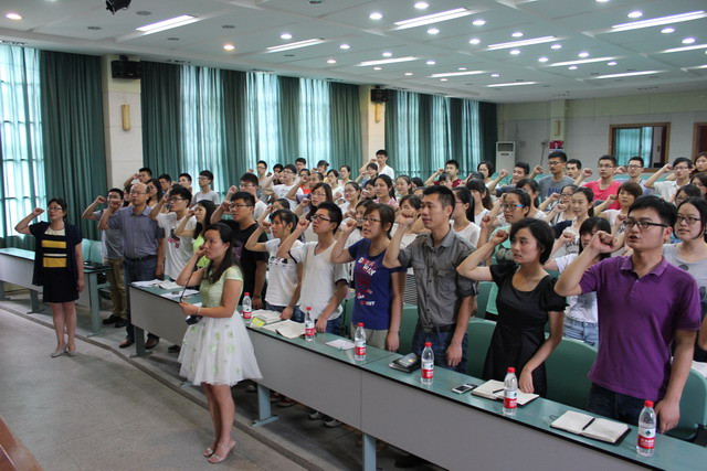 随后,27名新党员面对党旗,庄严地举起右手,郑重宣誓,与会的全体党员重温了入党誓词,接受了一次深刻的党性教育,表达对党成立93周年的隆重纪念。