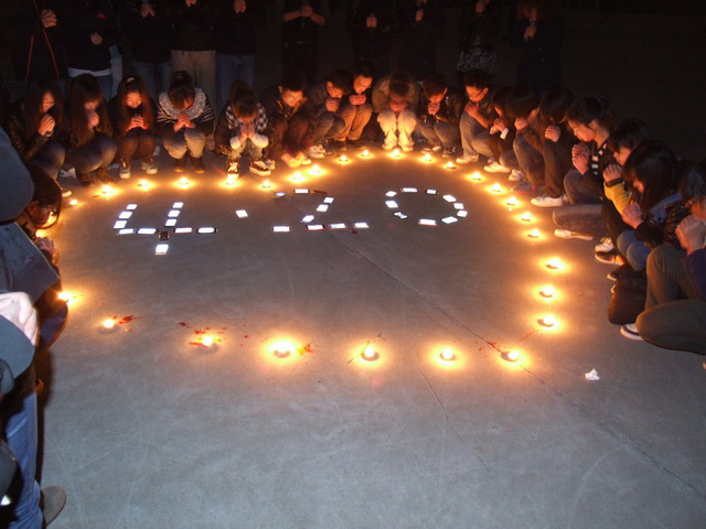夜幕下的校园庄严肃穆,一支支红烛围成的心形和用手机屏幕拼出的“420”字样在月光下显得安静而温暖。在缓缓响起的音乐声中,同学们闭上双眼,将手放在胸前,通过默哀的方式寄托对雅安遇难同胞的哀思。愿死者能够安息,愿被困同胞能够坚定信念,等待救援,愿脱困同胞能够化悲痛为力量,勇敢面对明天的生活!