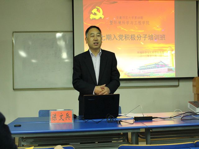 11月2日晚七点,环科院第七期员工入党积极分子培训班第三讲在实验楼201教室举行。校纪委副书记陈文兵应邀为学员做党纪党规专题讲座。