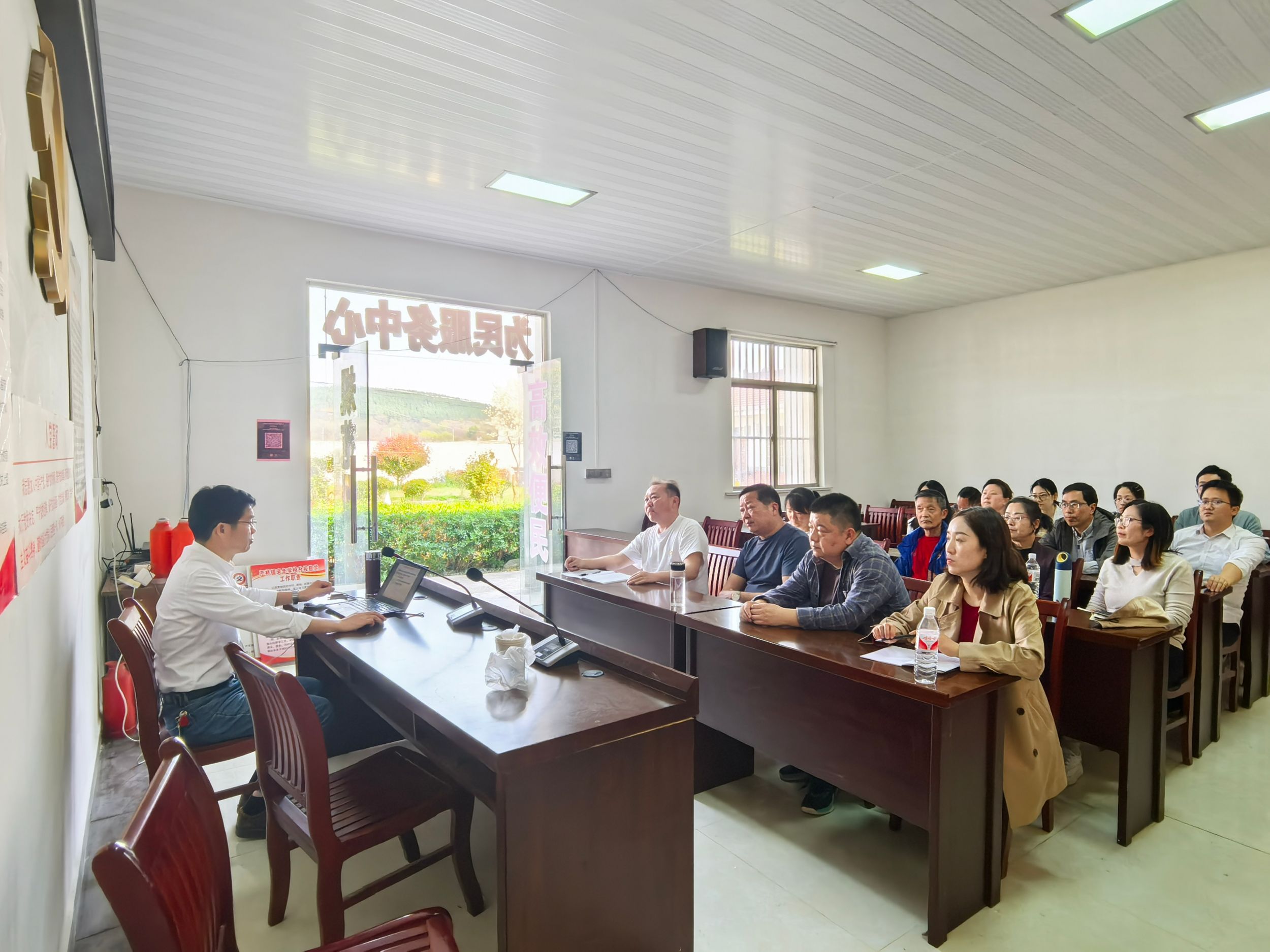 会上,环境专业教工党支部书记陶海升对两会精神进行了系统解读,结合生态环境领域的部署,通过详实的数据和典型案例,深入分析了当前美丽乡村建设与生态环境保护的紧迫性,重点阐释了“绿色发展”等战略要求,强调党员应主动对接国家需求,将专业能力转化为服务基层的实践动能。明堂村党总支书记叶斌介绍了村内产业发展现状,指出存在的瓶颈问题。公司副经理昝逢宇提出,支部党员要以此次活动为起点,持续深化校地合作,“把论文写在大地上”,通过技术帮扶推动乡村振兴,让两会精神在田间地头落地生根。