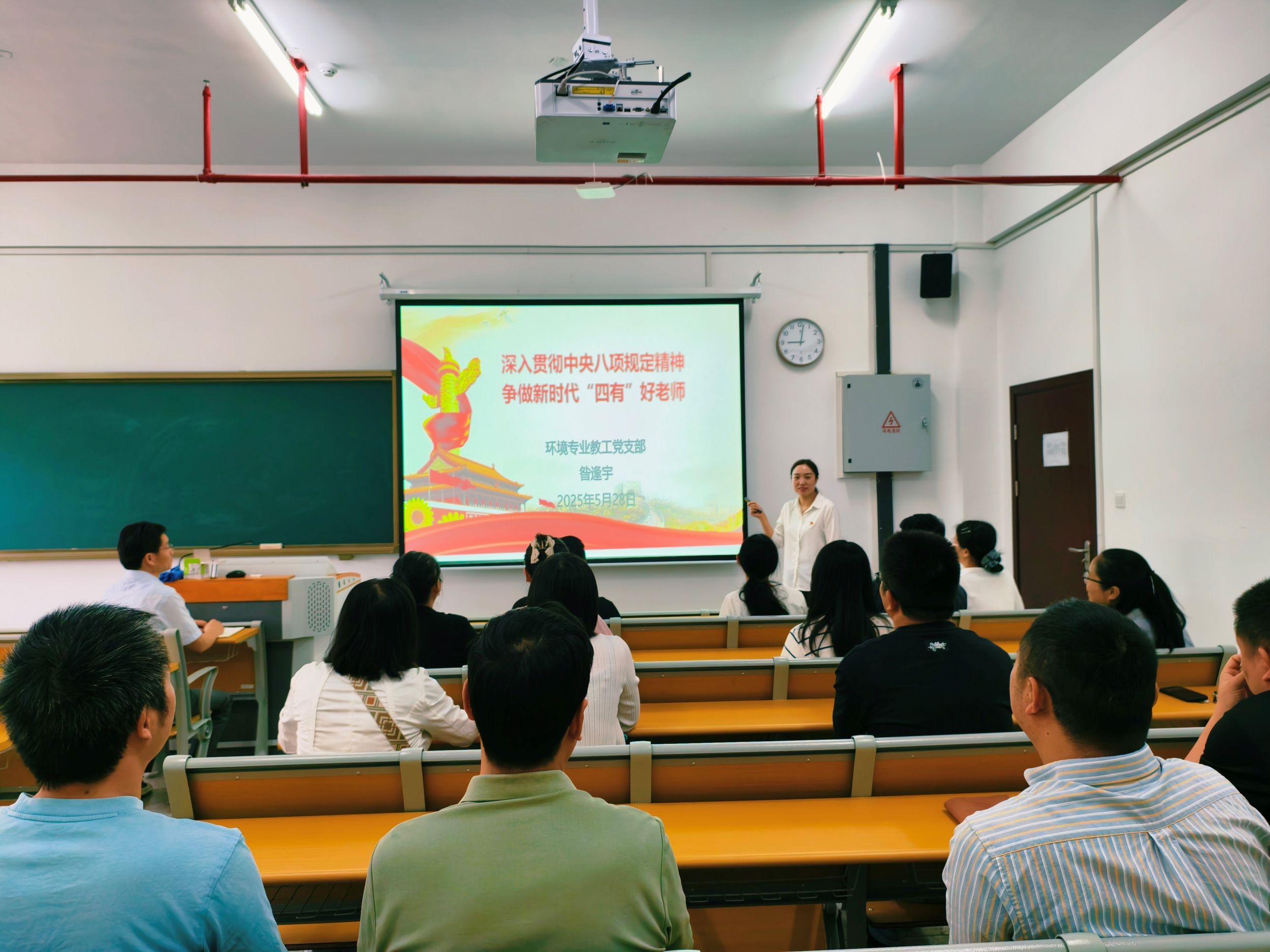 5月28日上午,环境专业教工党支部在清源楼C301召开支部大会,邀请公司副经理昝逢宇教授作题为“深入贯彻中央八项规定精神、争做新时代四有好老师”的专题党课,会议由支部书记陶海升主持。