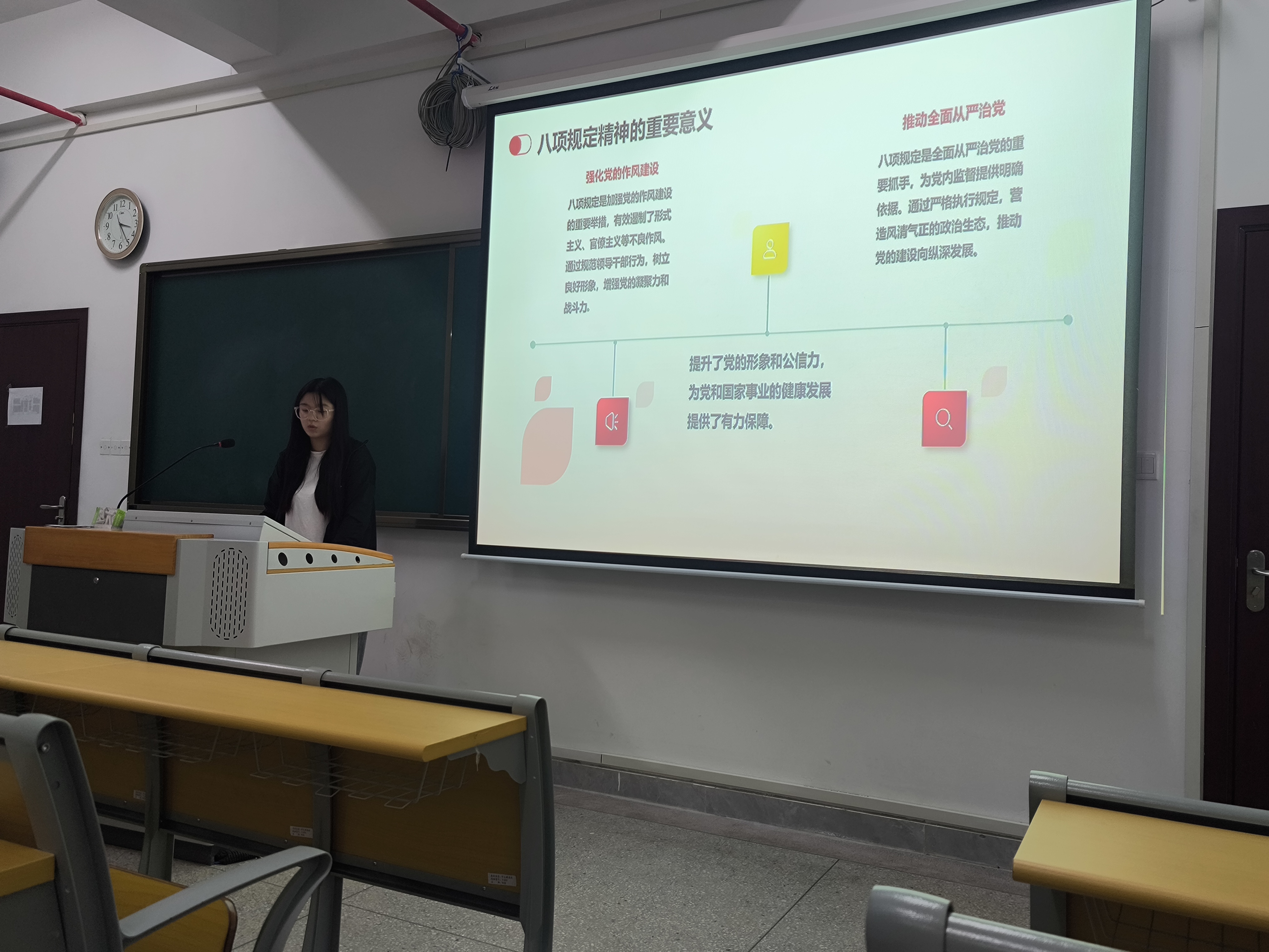 李猛、王一帆两位党员同志联系实际,阐述了中央八项规定精神在个人成长、学术活动、社会实践等方面的具体体现,以及对未来职业发展、社会生活、个人成长等方面的指导意义。