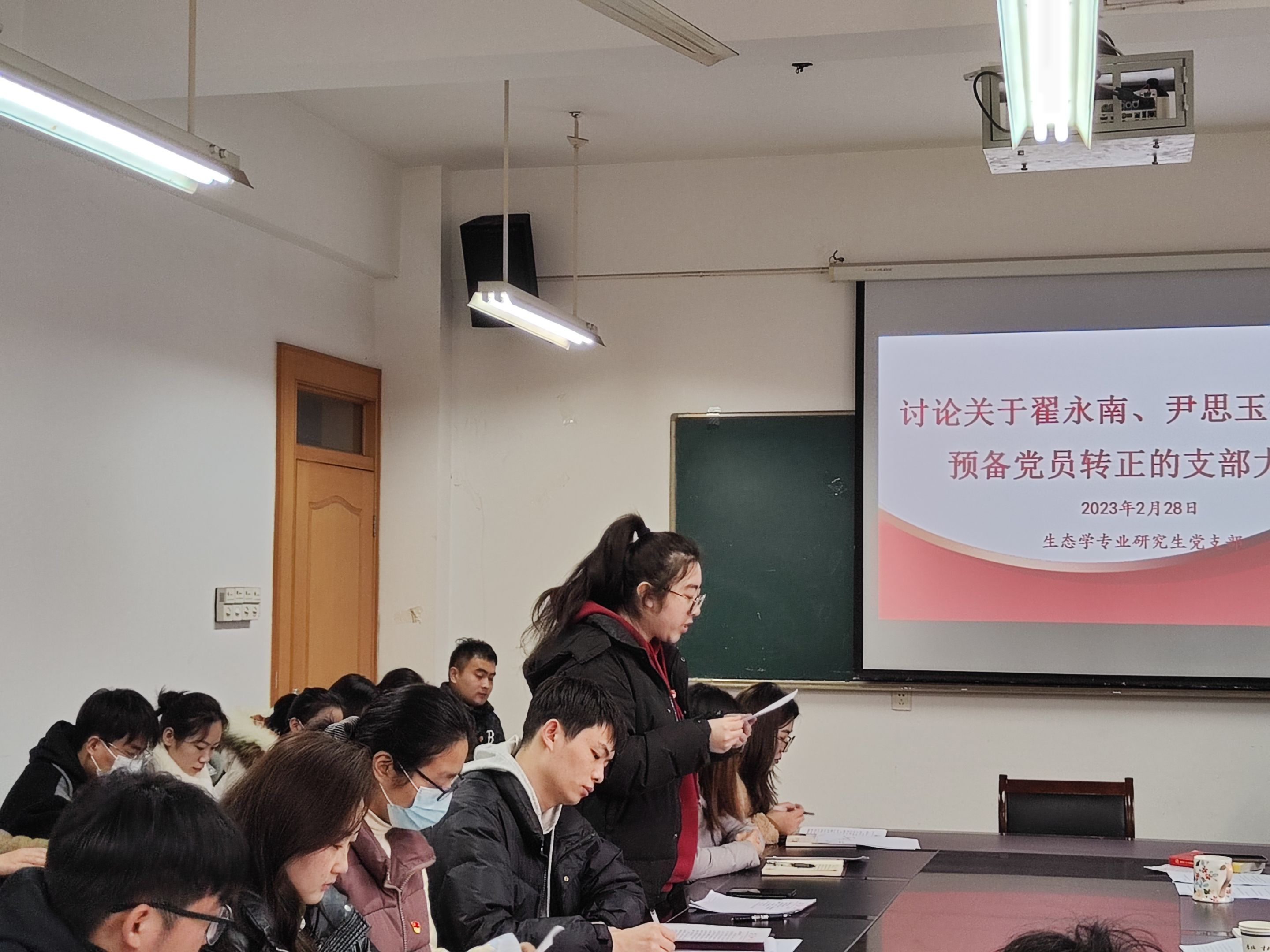 生态学专业研究生党支部召开预备党员转正大会和党员学习交流会