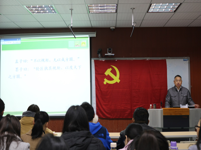 陈文兵指出,严密的组织和严格的纪律是中国共产党区别于其他政党最显著的特征之一,并且是坚持从严治党,确保党的纯洁性的必然要求,也是依法治国的鲜明体现。报告会中,他结合重大历史事件和历次中国共产党关于纪律细则、条例的修订、颁布以及反腐倡廉、纪律建设的进程,向学员们详细讲解了与党的纪律相关的理论知识。最后,他指出大学是青年员工心智成长的重要时期,校园文明直接折射出社会的文明,青年老员工要学会和懂得时间自律、学习自律、生活自律、交友自律、消费自律,遵守党的纪律。