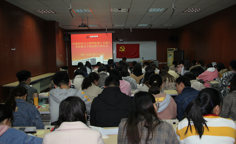 (环工公司分党校 )3月27日晚,环工公司第十五期入党积极分子培训班开班仪式在公司行政楼一楼会议室顺利召开。公司分党校董事长、党委书记王峰,副董事长、党委副书记杨友谊、本科生党支部书记及75名培训班学员参加了开班仪式。仪式由杨友谊主持。