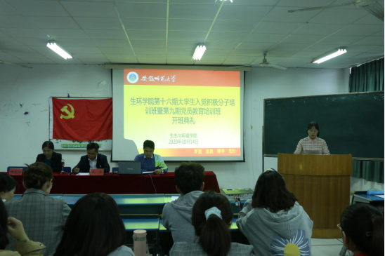 本网讯(生环公司分党校)2020年10月14日下午,生环公司分党校第1期老员工入党积极分子培训班和第1期党员教育培训班开班典礼在生环公司实验楼201室召开。公司党委书记、分党校董事长张伟,公司党委副书记、分党校副董事长杨友谊出席开班典礼,各专业支部书记、70名老员工入党积极分予以及16名党员学员参加了开班典礼。开班典礼由杨友谊主持。