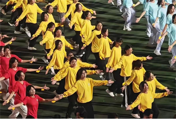 10月18日晚上7点,运动会开幕式上,公司的方阵队员身穿着统一的蓝色服装,迈着整齐的步伐,气势昂扬走过主席台。在《同爱同在》的排舞表演中,队员们朝气蓬勃,动作整齐划一,充满着运动热情,展现青春风采。