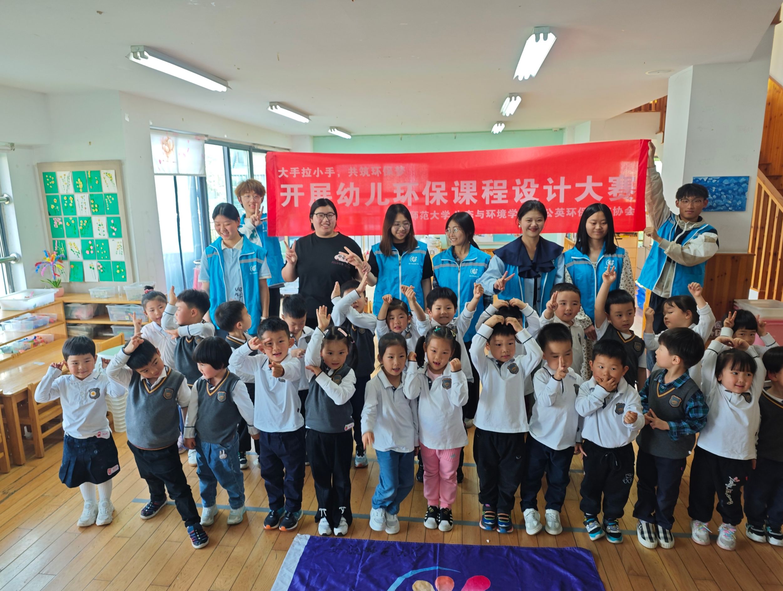 5月8日下午,蒲公英环保协会负责人董玉娇带领5组参赛选手与协会工作人员前往英国365集团官网附属幼儿园展开现场授课。各组参赛选手通过“理论宣讲+游戏互动”的形式向幼儿启蒙环保知识,各位小朋友十分配合,积极回答问题,课堂氛围十分融洽。赛后,通过幼儿随堂老师的课后反馈、幼儿的课堂互动、协会工作人员拍摄的现场互动视频等综合评出各奖项。