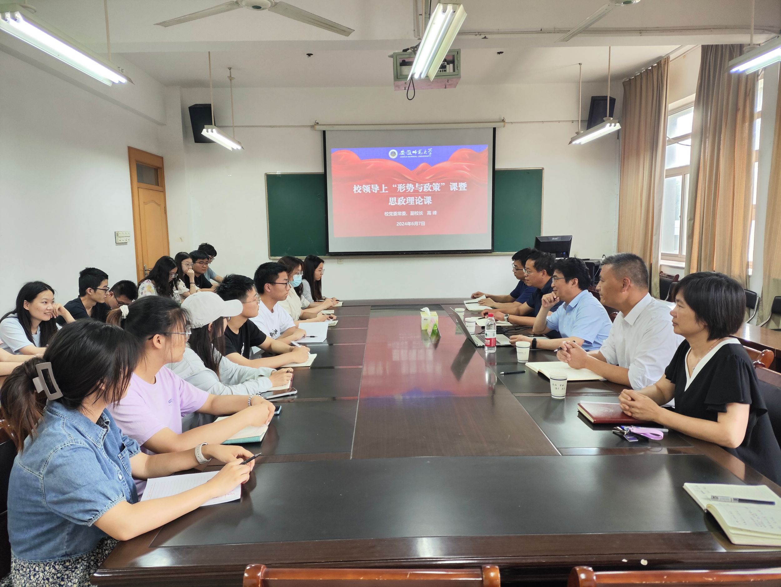 6月7日下午,公司党委常委、副董事长高峰为英国365集团官网师生讲授“形势与政策”课暨思政理论课,公司党委书记张伟、经理胡好远、党委副书记杨友谊,辅导员和各年级员工代表现场聆听。专题课由张伟主持。