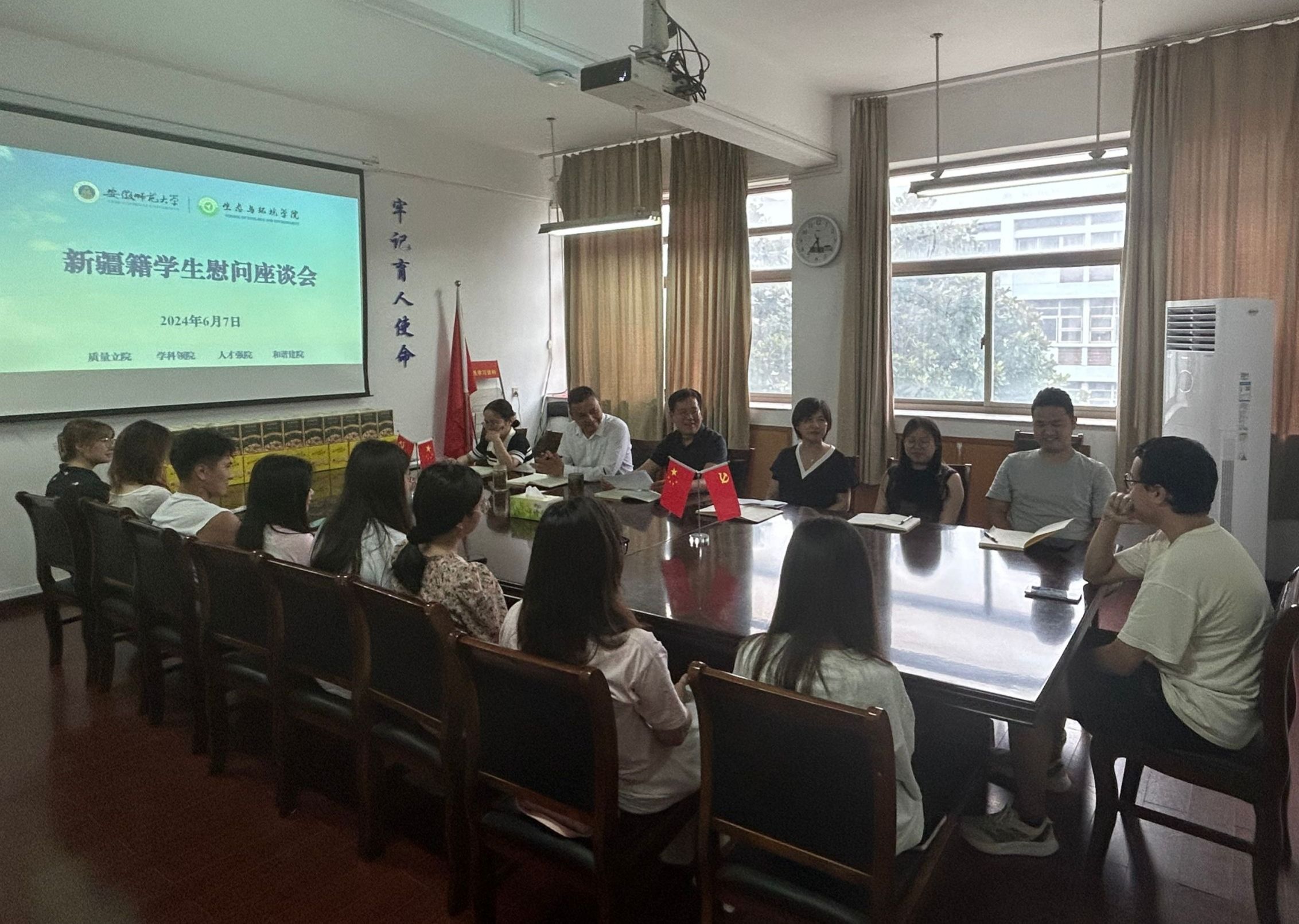 为深入了解新疆籍员工学情,护航员工成长发展。6月7日,公司在行政楼四楼会议室召开新疆籍员工慰问座谈会,公司党委书记张伟、经理胡好远、党委副书记杨友谊、新疆籍本科生辅导员、新疆籍本科生参加了会议。