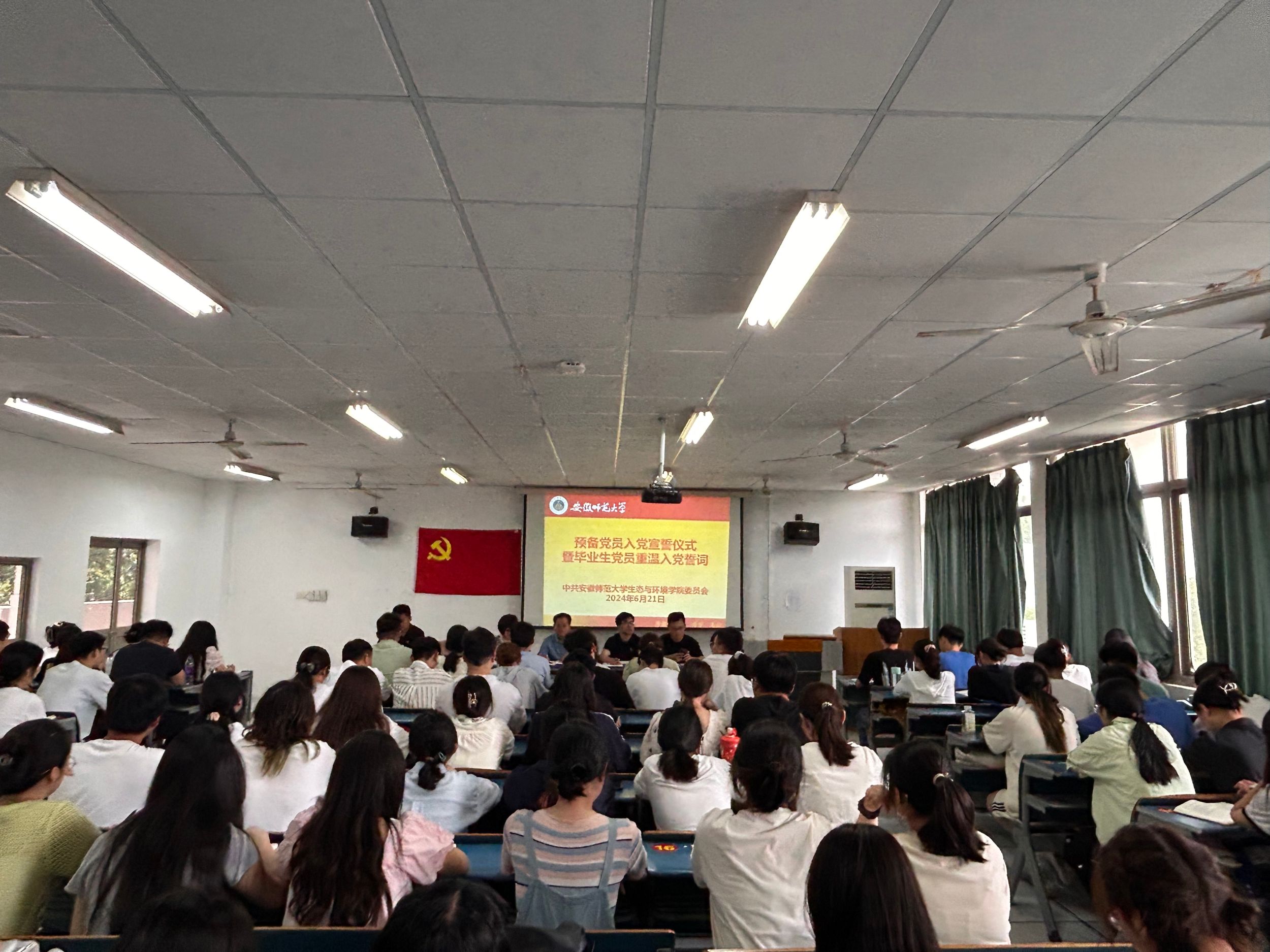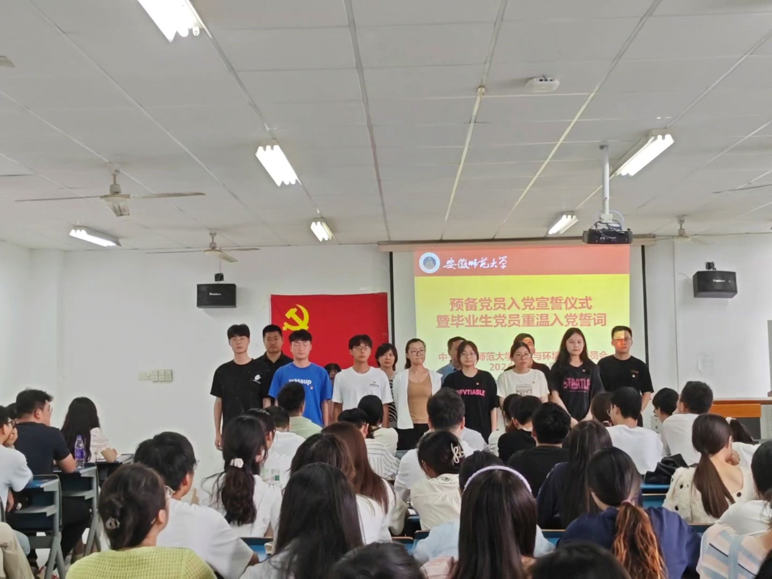 会前,与会人员集中观看学习了 2024年高公司党组织示范微党课展播第1讲《中华传统廉洁文化》。入党宣誓仪式在全场齐唱《国歌》中拉开序幕。杨友谊宣读了新发展党员名单,各党支部书记为新发展党员佩戴党员徽章。环境科学本科生党支部书记郑合庆带领全体党员入党宣誓。2022级环境科学专业门若彤代表新发展党员郑重向党组织承诺:坚定理想信念,永葆政治本色,积极投身实践,服务人民群众;严于律己,廉洁自律。
