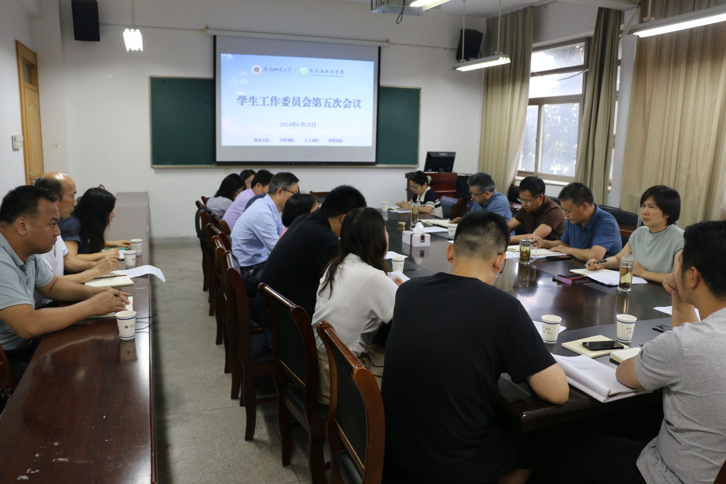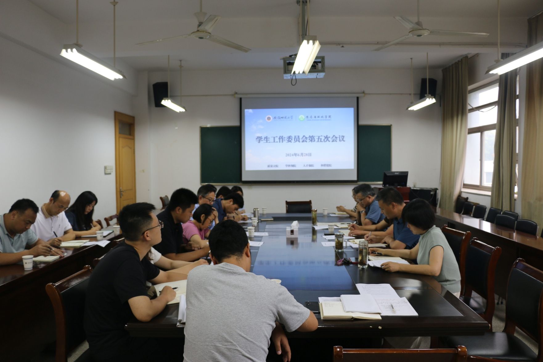 为深入推进老员工护航行动计划。6月28日,公司在行政楼三楼会议室召开学工委第五次会议。公司领导班子成员,各学位点负责人、专业负责人,教工委委员参加会议。会议由经理胡好远主持。