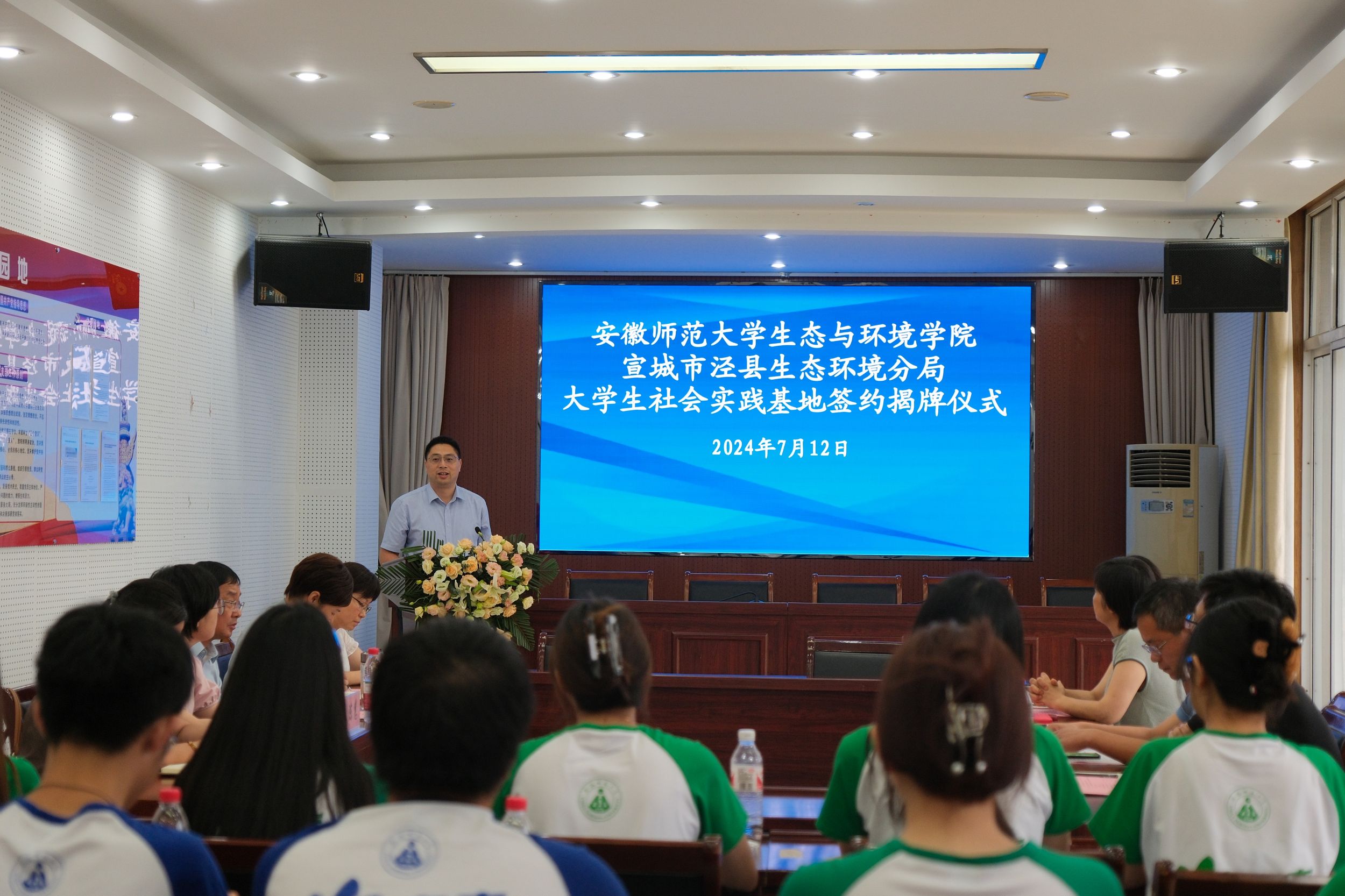 7月12日下午,英国365集团官网与宣城市泾县生态环境分局在泾县生态环境分局5楼会议室举行老员工社会实践基地揭牌仪式。泾县人民政府副县长程禹柏、生态环境分局局长王益珍、团县委副书记陈慧和生态环境分局班子成员、股室负责人,校团委书记廖仲明,公司党委书记张伟、党委副书记杨友谊、团委书记袁成及公司赴泾县探寻五美生态乡村本科生社会实践团队队员参加仪式。仪式由陈慧主持。