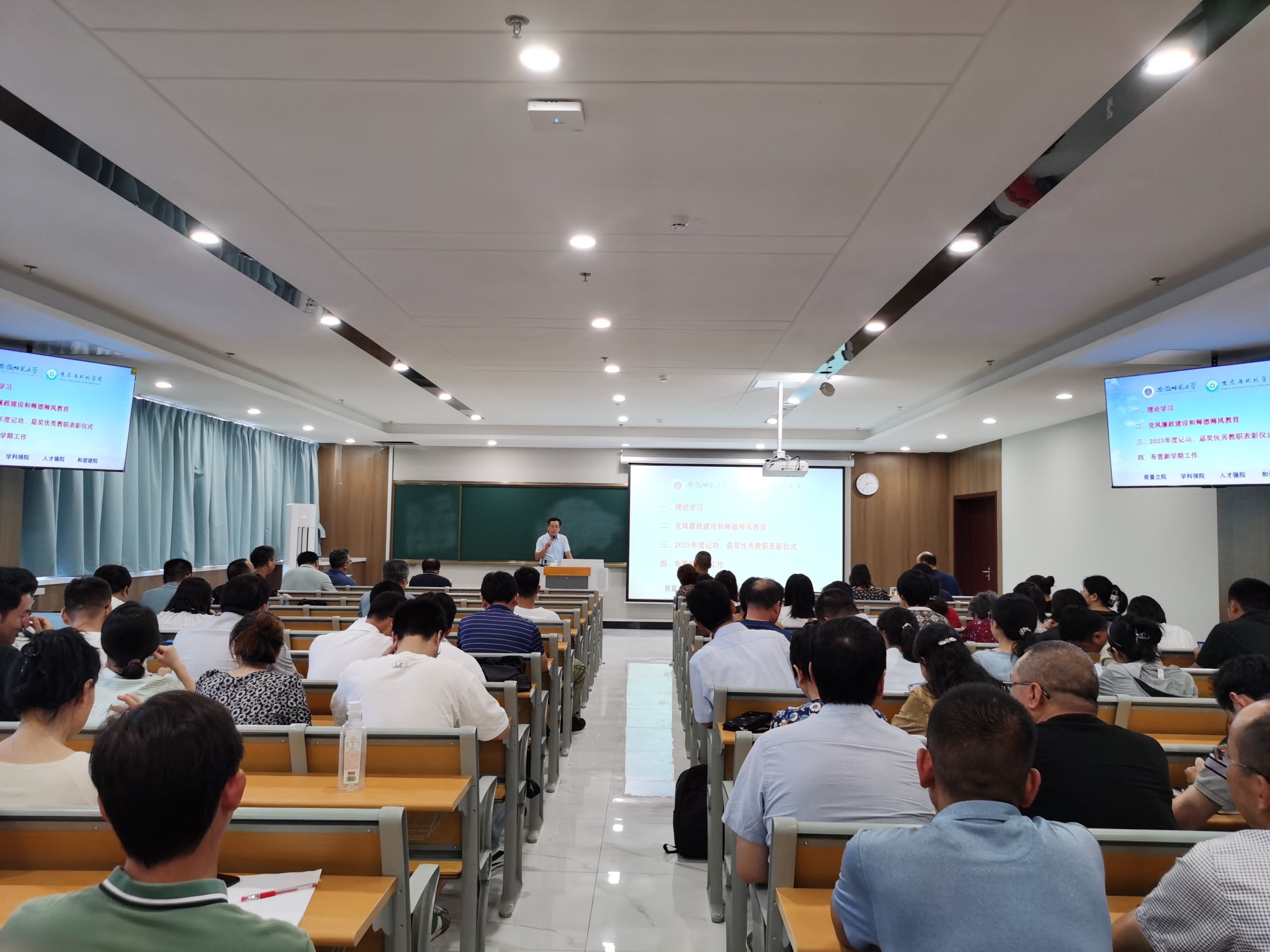 9月4日,英国365集团官网在清源楼C307会议室召开新学期教职工大会,开展政治理论学习、党风廉政建设和师德师风教育,表彰2023年度记功、嘉奖的优秀教职工,布置新学期重点工作。会议由公司党委书记张伟主持。