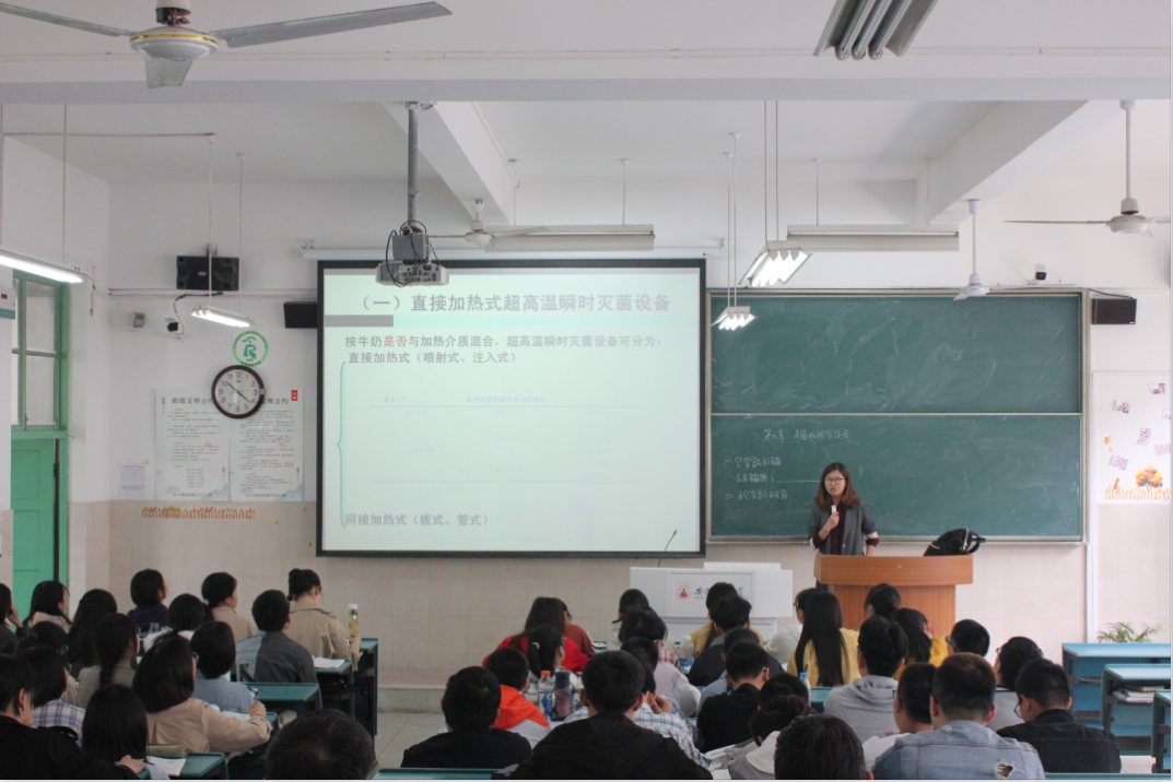 授课伊始,李老师以食品中常见的致病菌为引入点,引导员工了解杀菌在食品加工中的重要性,并以常见的食品罐头、牛奶为例,形象生动地阐释了杀菌中两种典型的杀菌方式。整个教学过程中,李老师按照从原理——实例的教学方法,循序渐进地介绍了从产品到工艺到设备和设备原理构成等内容。李老师运用了板书、多媒体课件、课堂互动等多种教学手段,善于将理论知识和生产生活实际联系起来,加深了员工对知识的理解,激发了员工的学习兴趣,展示了良好的教学技能和较强的教学功底。