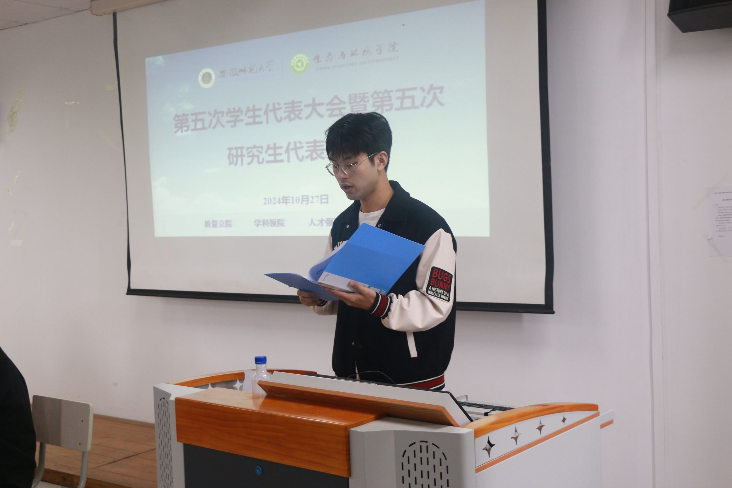随后,陈奥和于佳明分别代表第四届员工会和第四届研究生会作工作报告,报告全面回顾和总结了院员工会、研究生会在过去一年的工作,并对后续工作提出了建议,做出了展望。