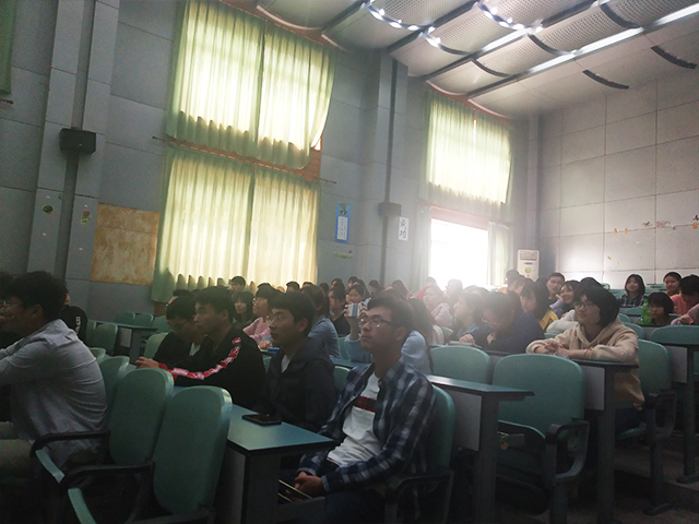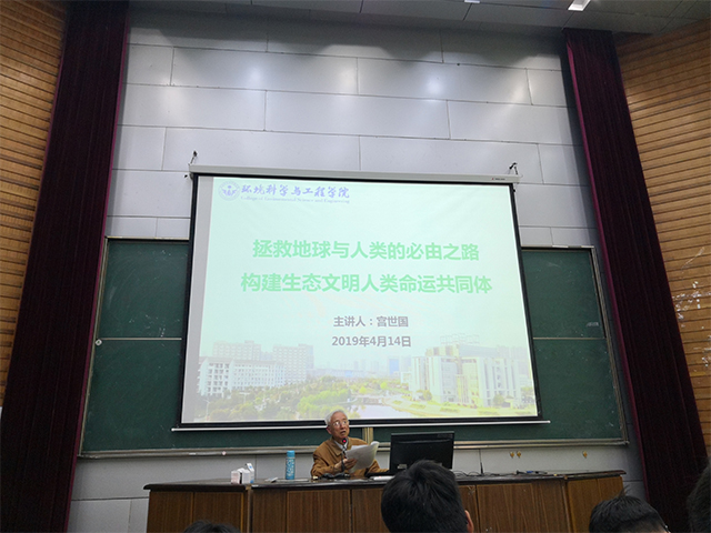 宫老师在讲座开始首先由标题切入,告诉同学们什么是生态文明和人类命运共同体,接着,他向同学们介绍了地球和人类面临的十大挑战,宫老师向同学们着重介绍了人口问题,其中包括人口老龄化、人口基数大以及男女比例失调等问题,其次,他也普及了我国淡水资源短缺的现状以及能源危机所面临的一些挑战。最后,宫老师将食品专业和环境问题联系起来,号召全体同学从我们专业出发,从我们自己做起,从小事做起,积极采取行动保护碧水蓝天,共建绿色家园。同学们也纷纷表示此次讲座令他们获益匪浅并报以热烈掌声。