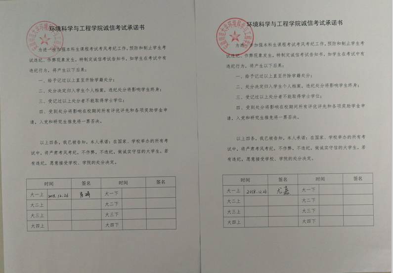 公司印发《诚信考试承诺书》,承诺书中详细地列出了考试违纪将产生的后果。同学们仔细阅读后,郑重地签下了自己的名字。