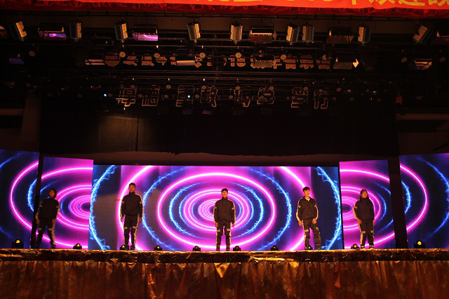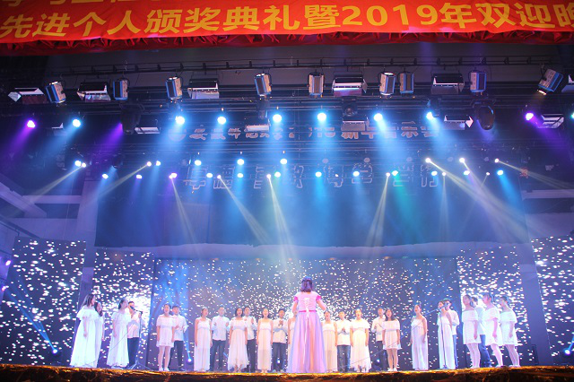 来自公司合唱队的《夜空中最亮的星(阿卡贝拉)》,纯人声的伴奏,男女双声线的高低搭配,星空背景的相互映衬,使得台下观众沉浸其中。
