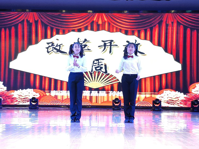 紧接着相声表演《改革开放四十年》用历史与当今的种种对比,活泼生动的网络用语,贴近生活的台词,引起现场同学们的强烈共鸣。