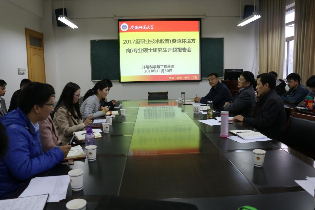 11月30日下午,环工公司在院行政楼3楼会议室举行了2017级职业技术教育专业(资源环境方向)论文开题报告会。报告会由分管经理杨如意主持,部分专业硕士导师和职业技术教育专业全体研究生参加了此次报告会。公司还特别邀请了教科院的路宝利研究员莅临指导开题报告。