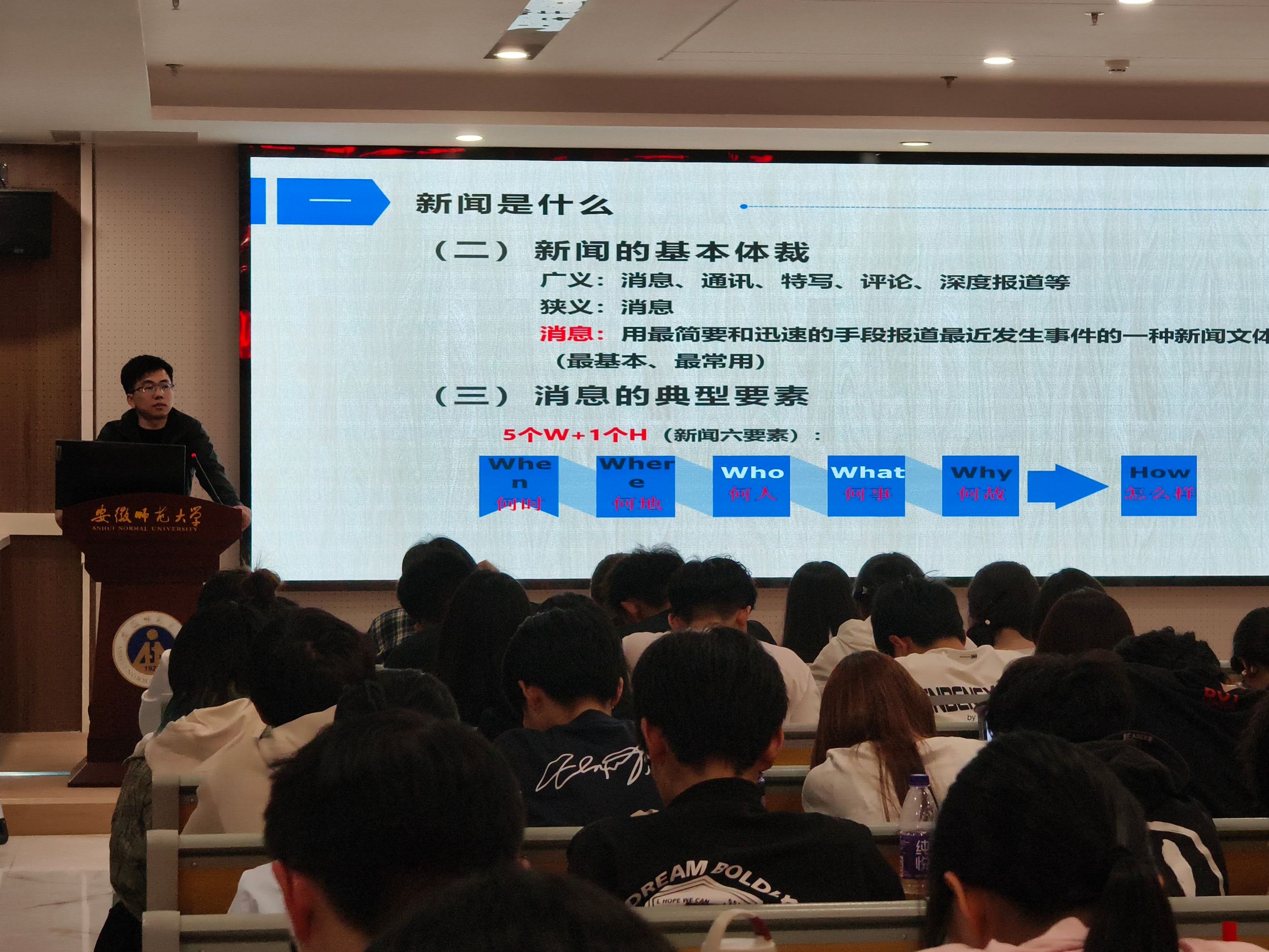 随后,袁成老师围绕校园新闻写作,从新闻是什么、新闻怎样写、新闻写什么、存在的问题等四个方面向同学们展开介绍,并就员工如何撰写新闻稿提出建议,希望同学们按照新闻稿件的书写要求,多练多写,努力提升自身能力,提高工作技能。