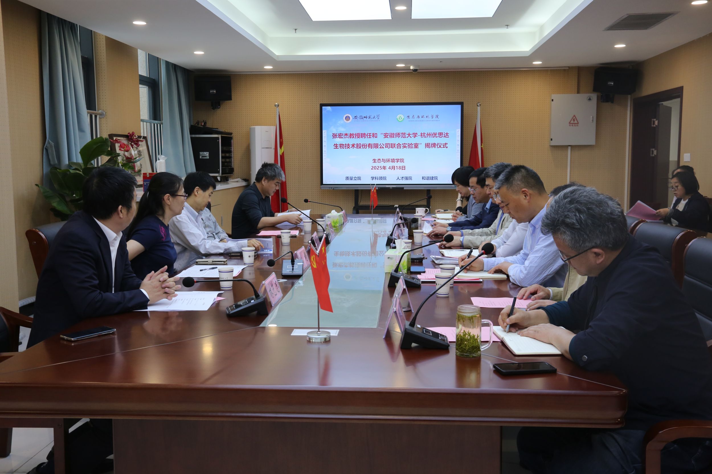 张宏杰和李宜江共同签署了聘任协议书。随后,与会人员前往实验室举行了专家工作室和“英国365集团官网-杭州优思达生物技术股份有限公司联合实验室”揭牌仪式。