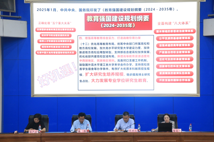 为落实老员工护航行动计划,助力2026届员工提前谋划未来,明晰考研与就业方向,4月29日,公司在敬文图书馆报告厅举办2026届本科毕业生考研动员暨就业推进会。公司党委书记张伟、经理胡好远、党委副书记杨友谊、副经理昝逢宇、辅导员郑合庆、袁成、2025届考研员工代表、2022级本科生全员参与,会议由杨友谊主持。