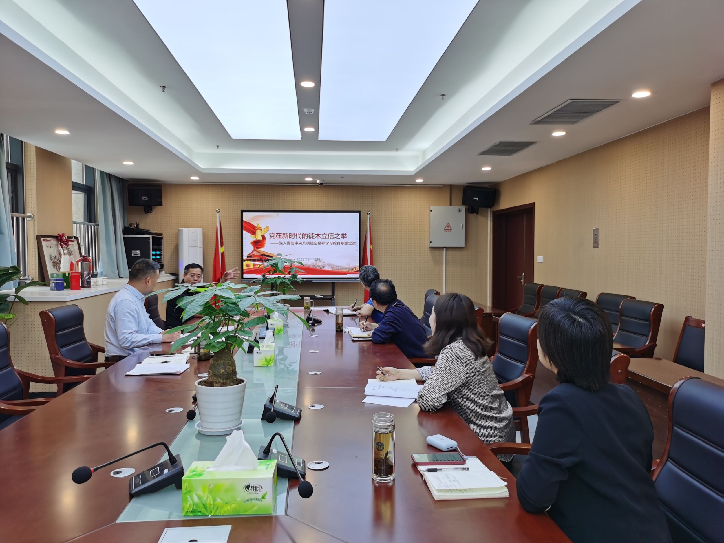 5月12日下午,公司在清源楼B305会议室召开深入贯彻中央八项规定精神学习教育专题读书班(第3期)暨党委理论学习中心组学习会,围绕习近平总书记关于加强党的作风建设的重要论述和中央八项规定及其实施细则精神开展学习研讨、警示教育和专题党课。公司班子成员、党委委员参加了会议。会议由公司党委书记张伟主持。