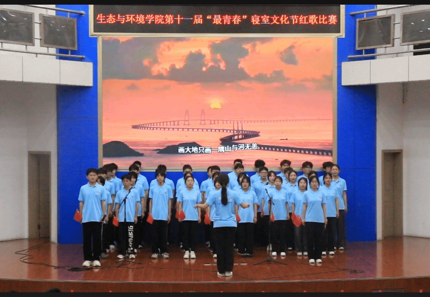 来自2023级和2024级的14支队伍依次登台,同学们以饱满的热情、嘹亮的歌声、昂扬的精神面貌,结合领唱、朗诵、手语等多种表现方式,精彩演绎了《保卫黄河》《在太行山上》《没有共产党就没有新中国》《万疆》《国家》《错位时空》《爱我中华》《我和我的祖国》《团结就是力量》《一二三四歌》《有我》《夜空中最亮的星》《中国人民解放军军歌》《我们都是追梦人》等14首经典歌曲,展现了爱国情怀,传递了信念力量,激励了师生奋进。