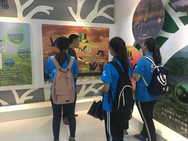 实地考察,初遇湖光。我们团队在当地管理局人员的带领下,绕湖岸行走,一眼望去,水草丰茂,鱼类共游,禽类齐飞,正应了升金湖称谓的来因——鱼类资源丰富,价值“升金”。在工作人员的解说下,我们了解到,升金湖不仅湿地及鱼类资源丰富,它还是国家珍禽保护区,国际上最重要的珍稀候鸟越冬地之一。随后,我们参观了禽类展厅,133平方公里水面的升金湖,拥有丰富的水生植物和浮游生物,为水禽类提供丰富食饵。每年在升金湖繁殖的鸟类达170余种20余万只。其中有中国最大的白头鹤种群,占世界总数5%东方白鹤占世界总数1/8。展厅的参观和工作人员的解说让我们了解了升金湖境内物种的多样。
