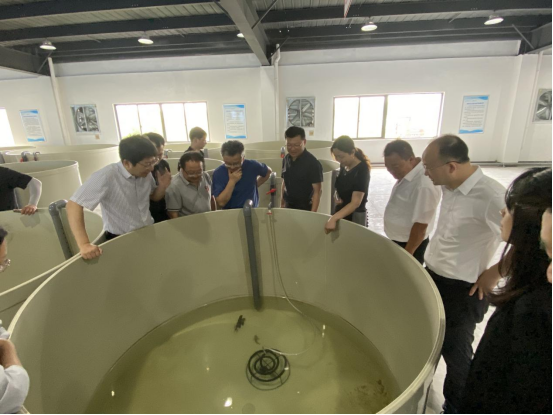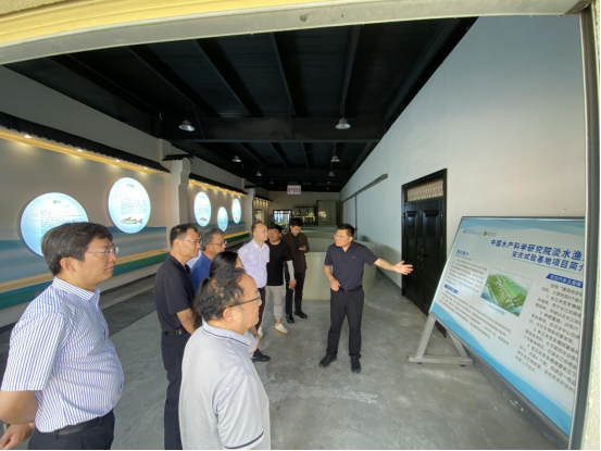 严云志等一行参观了淡水渔业研究中心保种基地、安庆试验基地的宿舍、食堂、实验室和养殖塘口等设施,了解了基地的平台建设、运营模式、科研方向等情况。