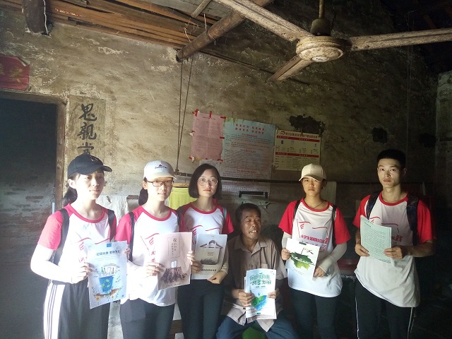 走过一片杂草丛生的空地,一栋小小的泥砖房映入大家眼帘,而在斑驳的砖墙上,金色的“光荣户”牌映照着阳光熠熠生辉。提前得知了队员们来访的老人早早的就等在了家中,黝黑的肤色,布满沟壑的脸庞,还有佝偻的脊背,这就是我们对老人的第一印象。