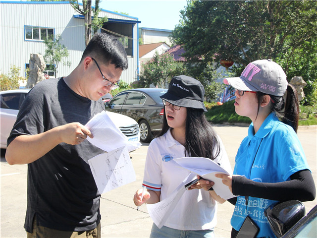 7月19日早上8点,七组队员同时出发,分赴泾川镇、丁家桥镇、云岭镇、蔡村镇等不同村庄。每组组员在环保局负责人或乡镇人员的带领下,实地走访删除名录上的企业单位,现场进行GPS定位和拍照取样,逐个核实企业污染源基本数据,对不真实、不完善的数据进行修改和补充,对漏查的污染源进行补报。晚上,团队对一天的工作进行了总结,各个小组分别汇报了工作成果,并提出了在工作中遇到的问题,通过队员们的反复讨论商榷,最终提出了合理的对策。随后,队长对次日工作进行了详细的人员安排和计划安排。一天的实地调研和总结,让队员们将所学理论应用于实际,也对全国污染源普查有了更多的了解和认识。在接下来的暑期社会实践中,团队将对泾县县城范围内共1710家删除企业全部进行现场核实。