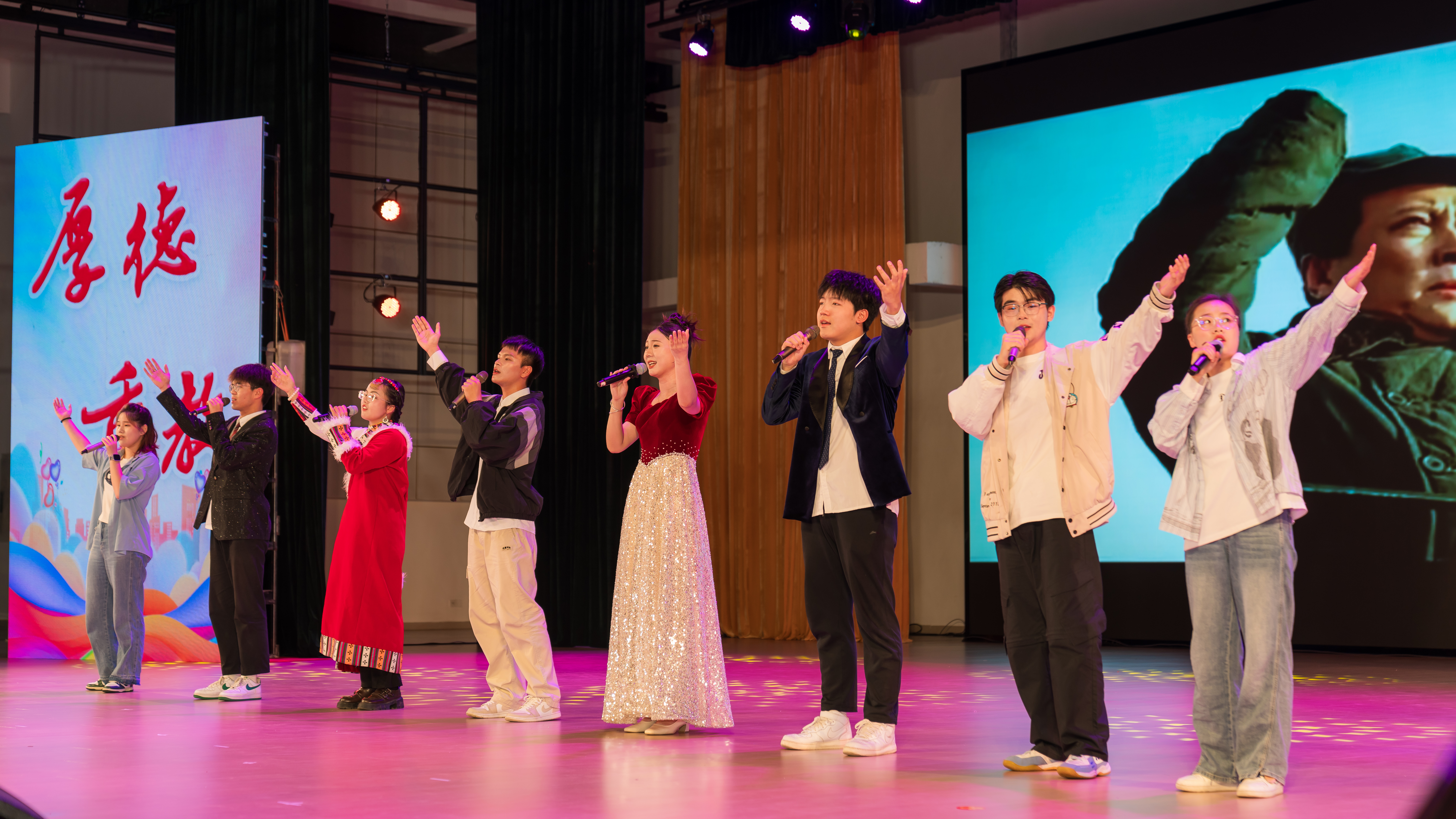 晚会在充满活力的开场舞蹈《青苹果乐园》中拉开序幕,舞者们用灵动的舞步点燃现场气氛;各专业同学带来歌曲串烧,以青春歌声尽情展现活力与风采,赢得现场阵阵掌声;诗歌朗诵《百年沧桑》震撼登场,激昂的声音将现场师生带入了先辈们艰苦卓绝的奋进年代;2024级环境工程1班同学唱响红色歌曲《有我》,高亢有力的旋律彰显出新时代学子昂扬向上的精神风貌。