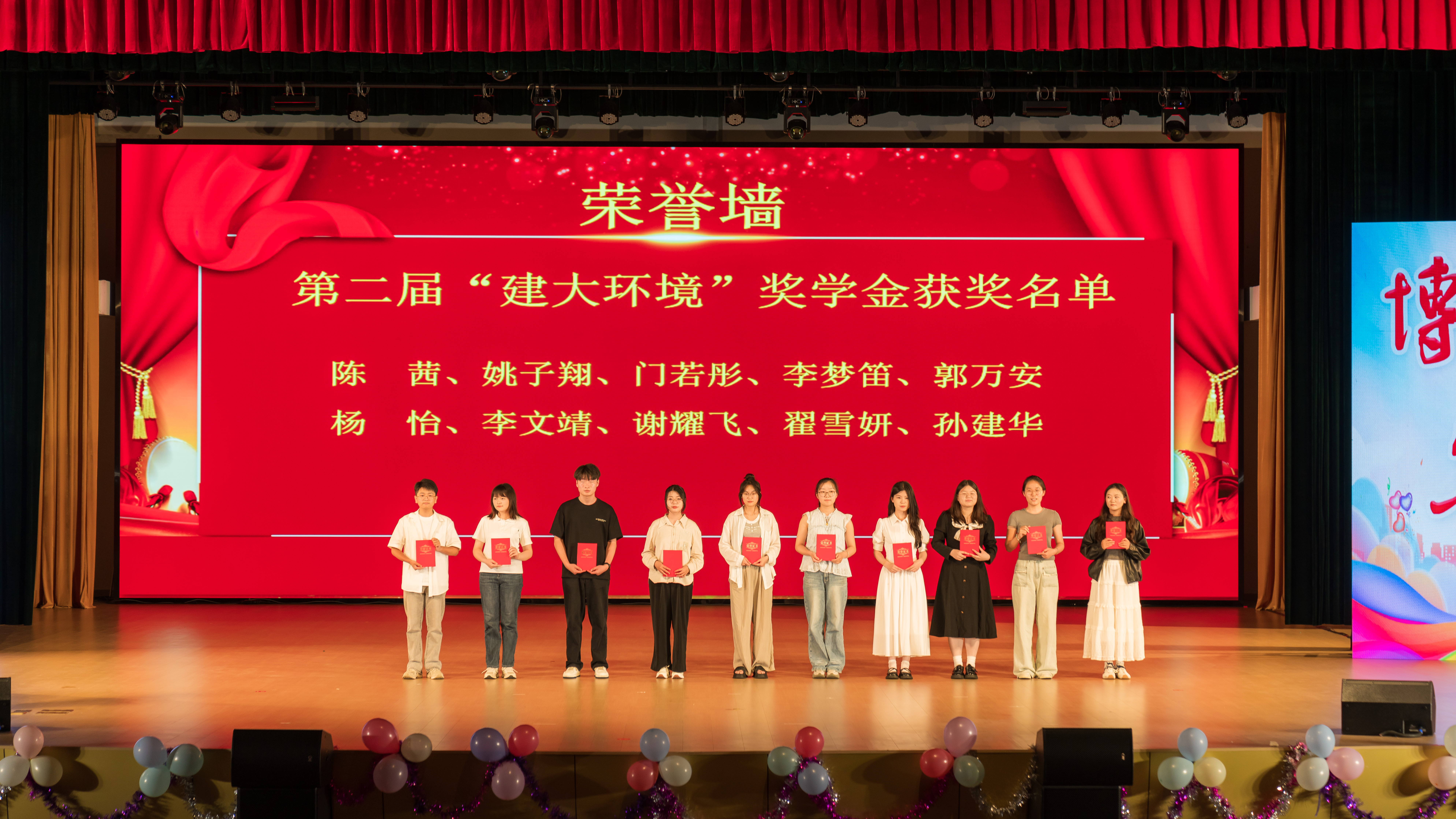 沈刚为荣获第二届“建大环境”奖学金的同学颁奖,并希望同学们既要精研理论,更要深入实践,积极投身生态环保事业。公司经理胡好远、副经理昝逢宇为第五届“公司之星”荣誉称号获得者颁奖,希望同学们以此为榜样,奋力拼搏,不负韶华。