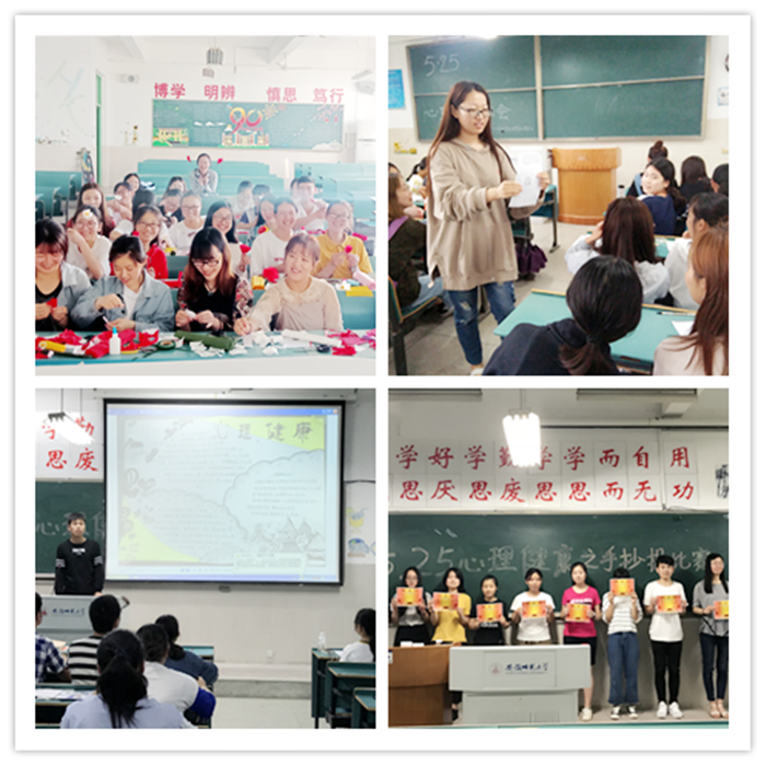 各班级在公司心理健康教育中心、公司“蒲公英”心灵驿站的指导下也积极开展了独具特色的心理健康活动。16环境工程和环境科学专业共同举办了“妙手生花”手工活动,16食品科学与工程专业组织了“你画我猜”主题活动,16食品质量与安全专业进行了别开生面的“游戏接龙”,17环境工程专业精心策划了一场“吃水果”比赛,17级环境科学专业设计了一场“画你所想、写你想说”的主题活动,17食品质量与安全专业现场开展了一次“手抄报评选”活动,17食品科学与工程专业进行了一场“DIY”心理科普小讲堂……富有趣味和创意的活动让同学门乐在其中,学会了放松,学会了表达,也重新认识了自我。