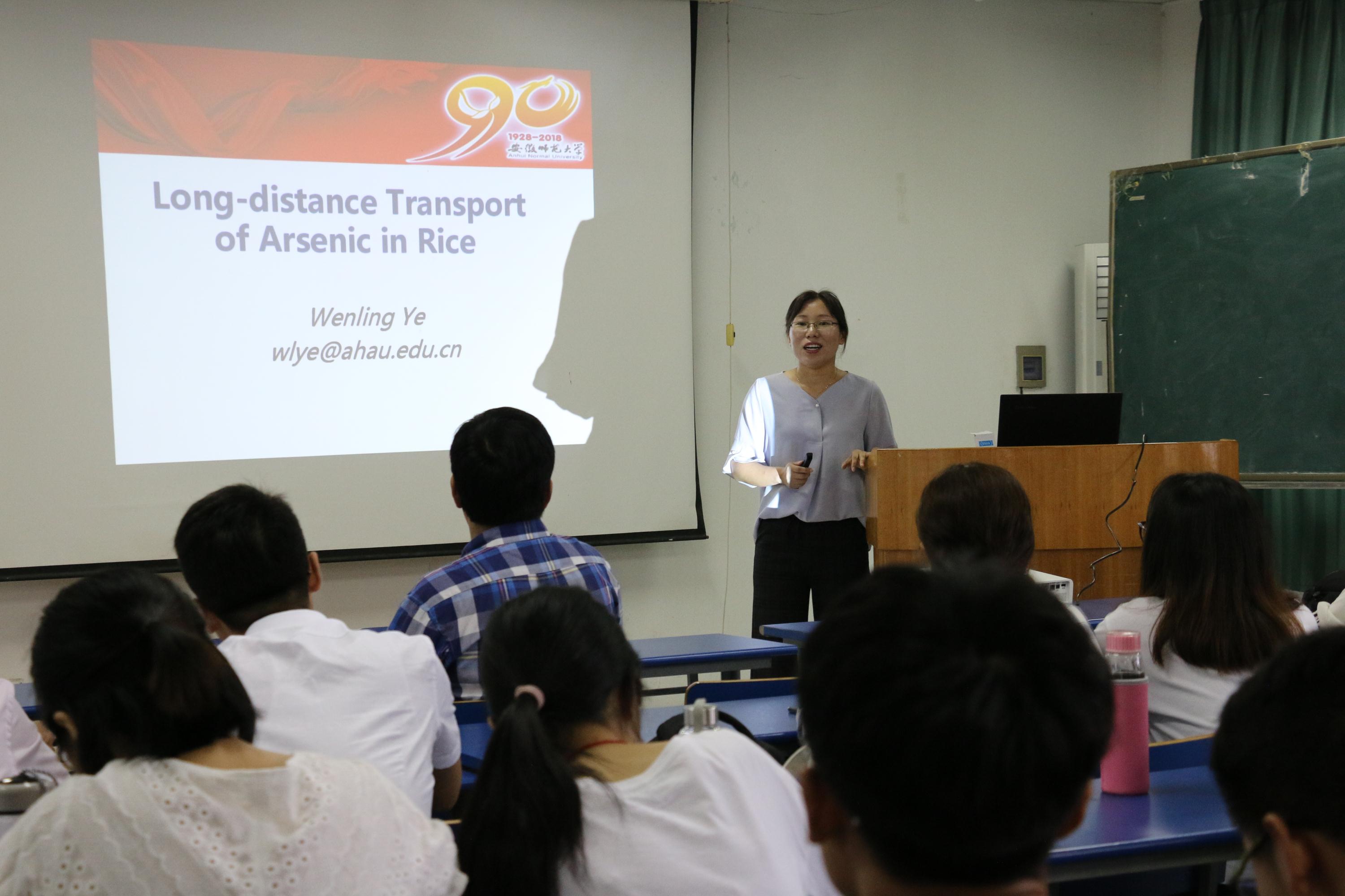 2002级员工、安徽农业大学资源与环境公司叶文玲副教授以《砷在水稻体内的长距离运输》为题,介绍了水稻对砷的吸收和运输过程。砷是一种非必需元素,但水稻积累砷的能力非常强,具有很大的健康风险。叶文玲副教授从自然界中砷的形态和毒性出发,阐释了硅、磷以及水分处理等因子作用下水稻体内不同形态砷的变化规律,以及在木质部和韧皮部的分布特征。结果显示,施硅、施磷、淹水处理可以降低水稻对砷的积累,木质部主要运输无机砷,而韧皮部主要运输有机砷。