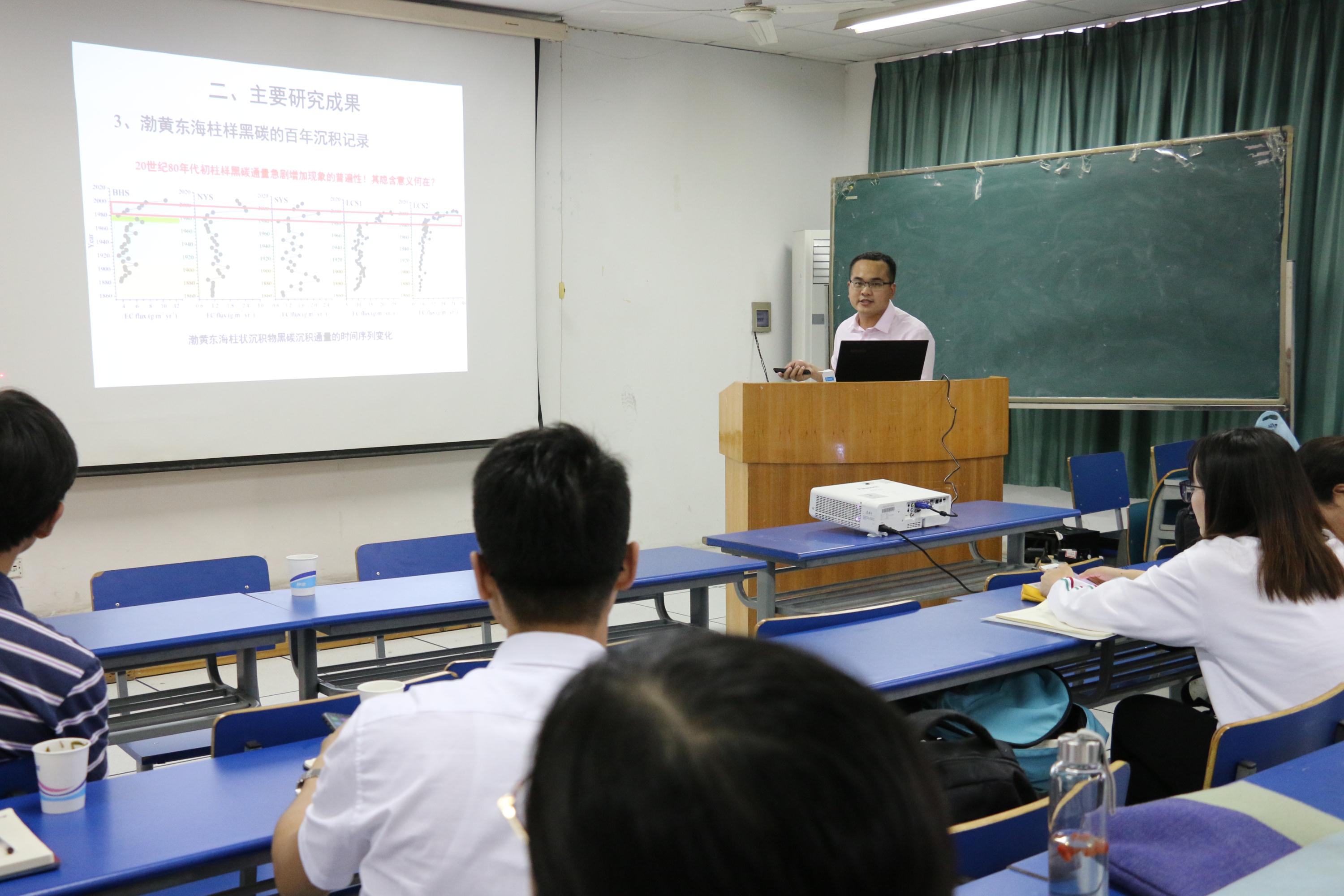 2007级员工、同济大学英国365集团官网方引博士以《我国渤黄东海黑碳的“源—汇”过程和通量研究》为题,介绍了在海洋黑碳方面开展的研究工作。黑碳是含碳物质不完全燃烧发生热解的产物,其性质稳定,对人体健康和区域性灰霾具有一定的贡献。方引博士通过大量翔实的数据展示了我国渤海流域黑碳的分布特征和主要来源,分析了其与人类活动之间的关系。研究结果表明,细颗粒物浓度与渤海表层黑碳的通量具有正相关关系,多年的研究数据显示渤海的黑碳量高于黄海。