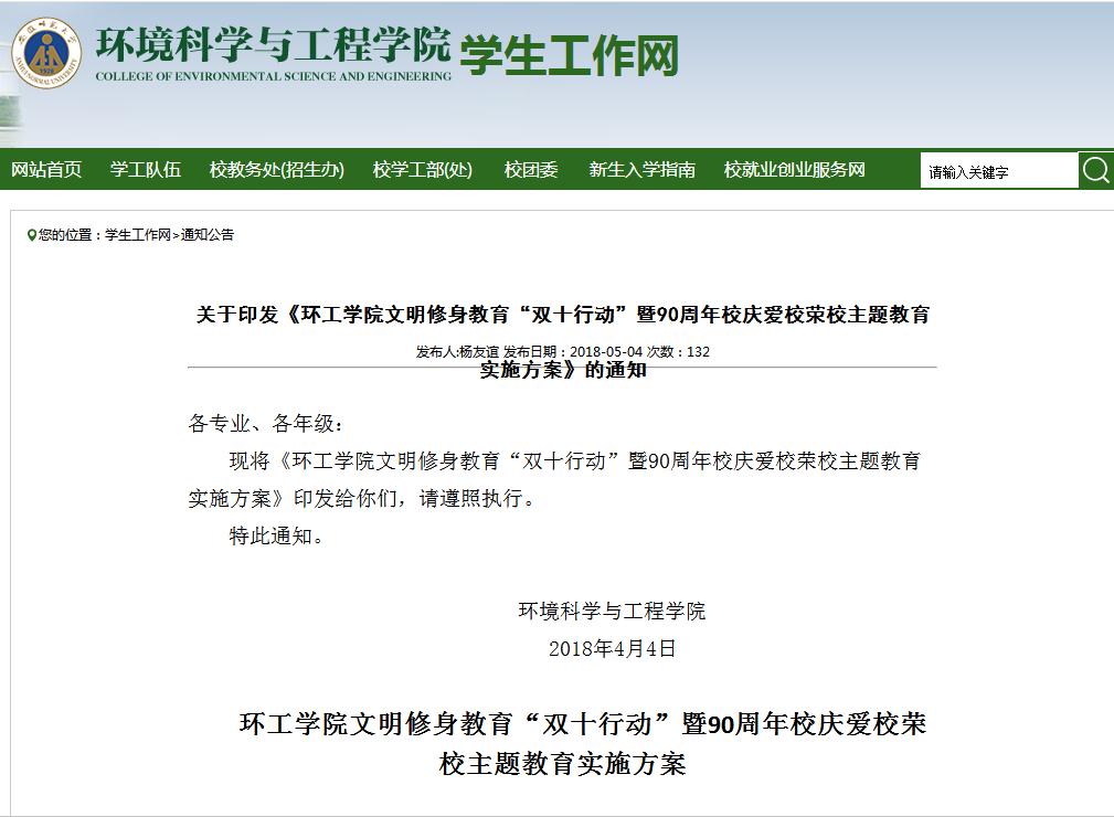制定工作方案。4月初,学工组在公司党政领导班子的指导下,制定了《环工公司文明修身教育“双十行动”暨90周年校庆爱校荣校主题教育实施方案》,设计了校史校情和院史院情主题班会、校园文明创建和特色主题活动三大模块,共计8项校园文化活动,努力做到契合节点,点面结合,创新形式,增强活动的针对性和实效性、感染力和影响力。
