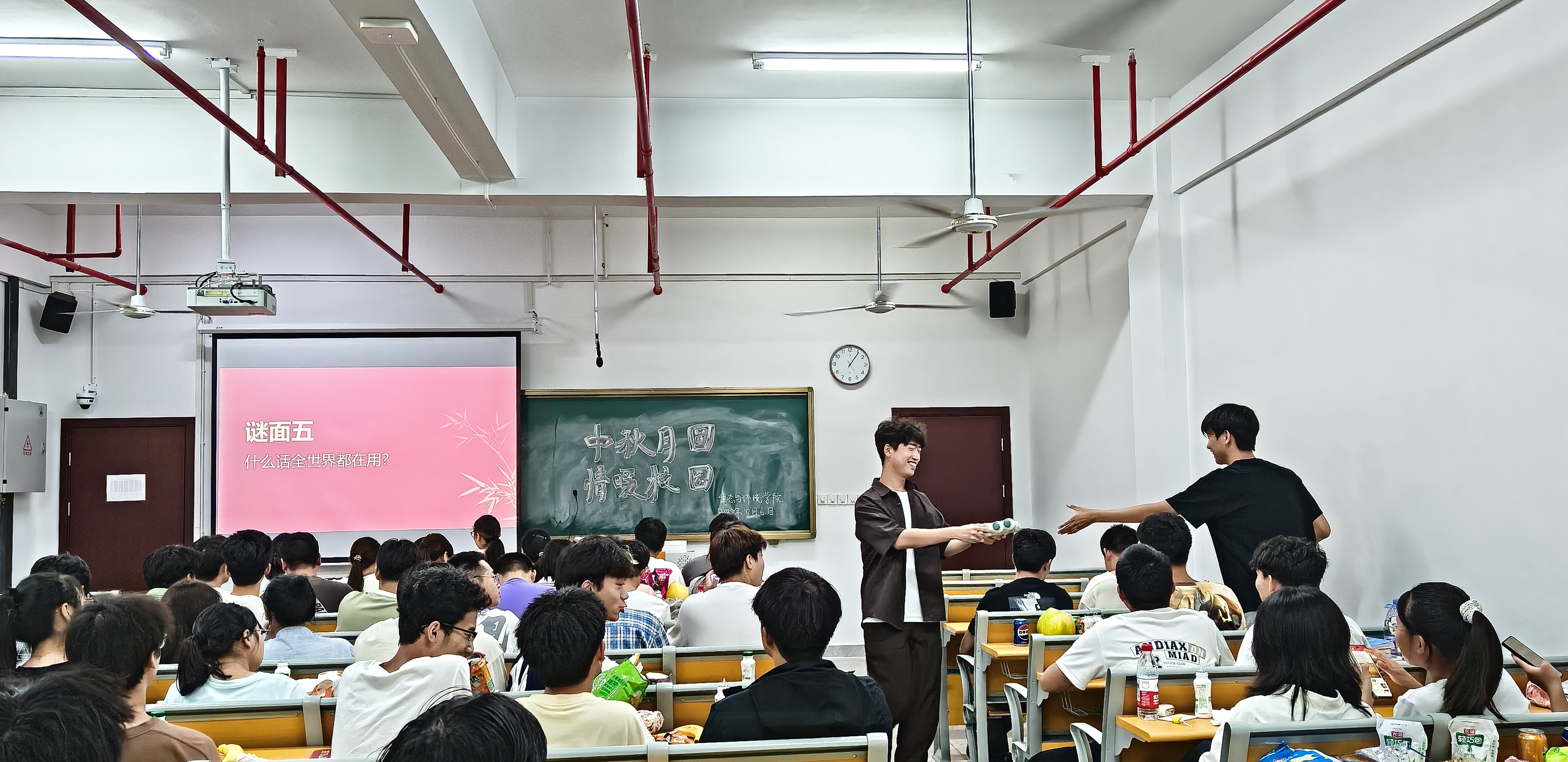 又是一年中秋月,正是人间好时节。10月6日晚,公司“中秋月圆 情暖校园”留校员工联欢活动于清源楼C306教室温情举行。公司党委副书记张海兵,辅导员刘姣姣、罗婷宇、孙苗苗,公司员工会主席团成员2023级环境科学专业邵锐杰、江求涛,与60余名留校员工齐聚一堂、共迎中秋、畅叙情谊。