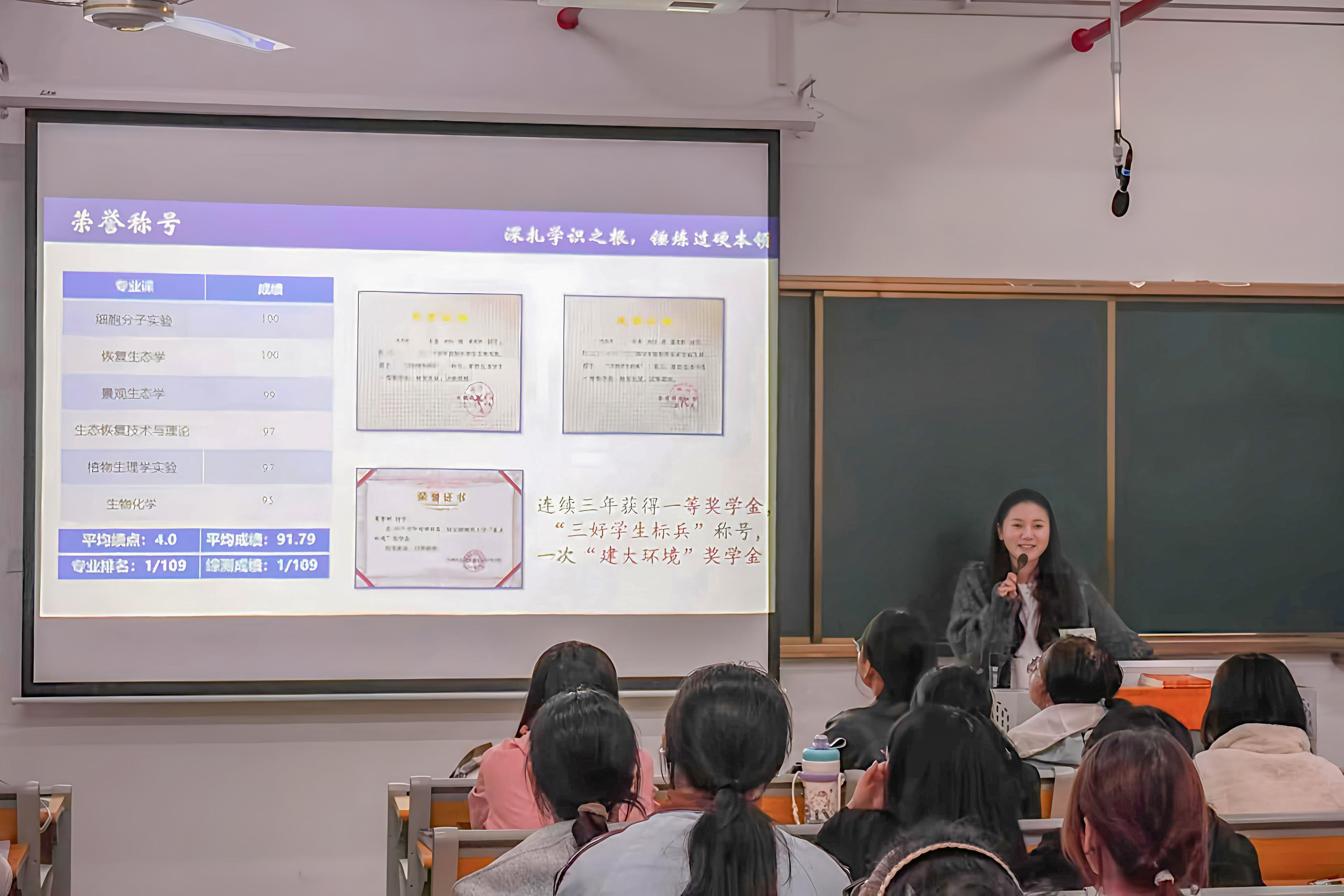 针对长远发展,分享会还设置了“考研保研与实习实践”专题。分享人结合自身保研至英国365集团官网、985高校或赴知名环保单位实习实践的经历,为新生梳理了大学四年的关键节点与准备策略,提供了极具参考价值的“进阶攻略”。