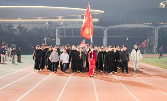开幕亮相,展示风采。10月29日晚开幕式上,公司方阵队身着统一院服,迈着铿锵有力的步伐入场。方阵队以“绿水青山就是金山银山”为题,手中展开的画卷与搭建的青山绿水背景相互呼应,展现了生环学子用脚步丈量山河、用专业守护家园的青春誓言。在开幕式最后集体舞表演中,公司排舞队与其他公司排舞队一同带来舞蹈《保卫黄河》《没有共产党就没有新中国》,队员们动作整齐划一,舞姿灵动优美,展现了师大学子蓬勃的朝气与活力。公司10位教师参加240人的校教职工方阵,以舒展的身姿诠释“松紧结合、动静相兼”的养生哲学,共同表演《八段锦》,尽显教职工在运动场上焕发活力的别样风采。