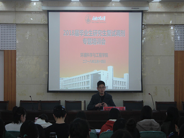 (本网讯/环工公司)为帮助考研学子精准掌握研究生调剂相关政策,3月14日下午公司在财务处二楼报告厅,举办了2018届毕业生就业系列活动——考研调剂报告会。校研究生公司招生办公室凌从祥老师为同学们答疑解惑,123名同学参加了培训会。会议由辅导员童华卿主持。。
