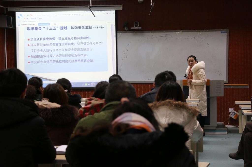 1月22日下午,公司邀请科研处汪小丽科长详细解读了2018年国家基金申报指南,重点介绍申报政策的新变化,以及项目经费管理、基金预算编制、形式审查等相关问题。公司积极引导教师关注联合基金项目申报,加强与外单位的合作交流,拓宽申报类型。