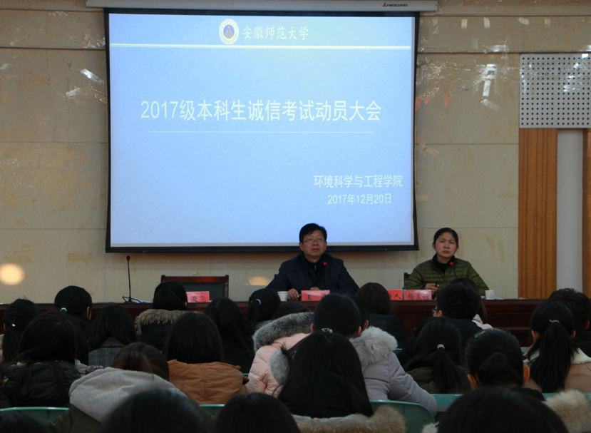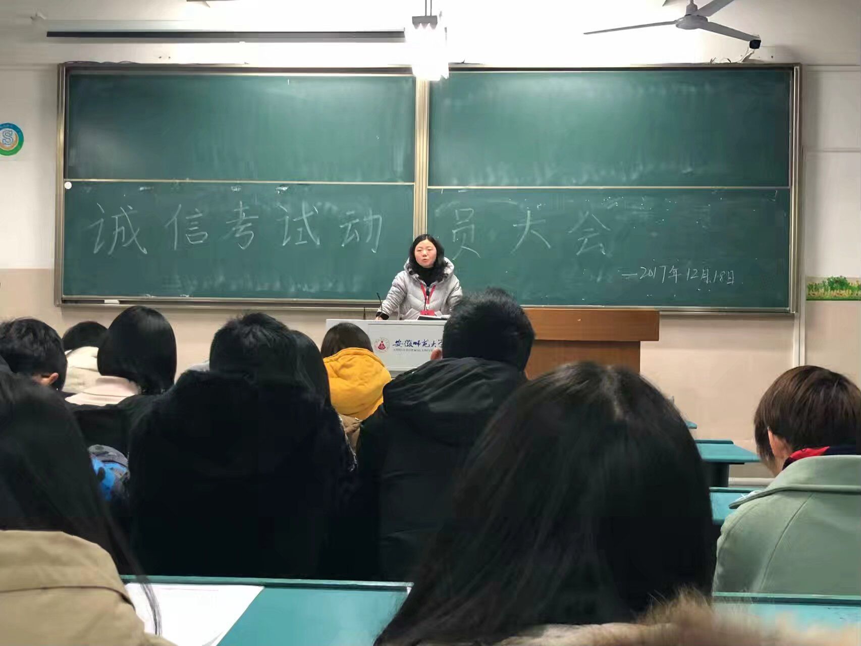全院动员,提高认识。公司于12月20日下午在财务处二楼报告厅召开2017级员工诚信考试动员大会,公司党委书记王峰为17级全体员工做诚信考试动员讲话,会议由公司党委副书记杨友谊主持,17级辅导员和全体2017级员工参加。会上,杨友谊宣读了《英国365集团官网考试纪律及违纪作弊处罚规定》。王峰强调了公司对考风考纪工作的重视,提醒同学们要理性的对待考试,切勿违反考场纪律,要把考试当作检查自身不足的契机,用成绩衡量自我学习情况。最后,他希望同学们牢记考试纪律,端正考风,科学复习,认真备考,考出优异成绩。