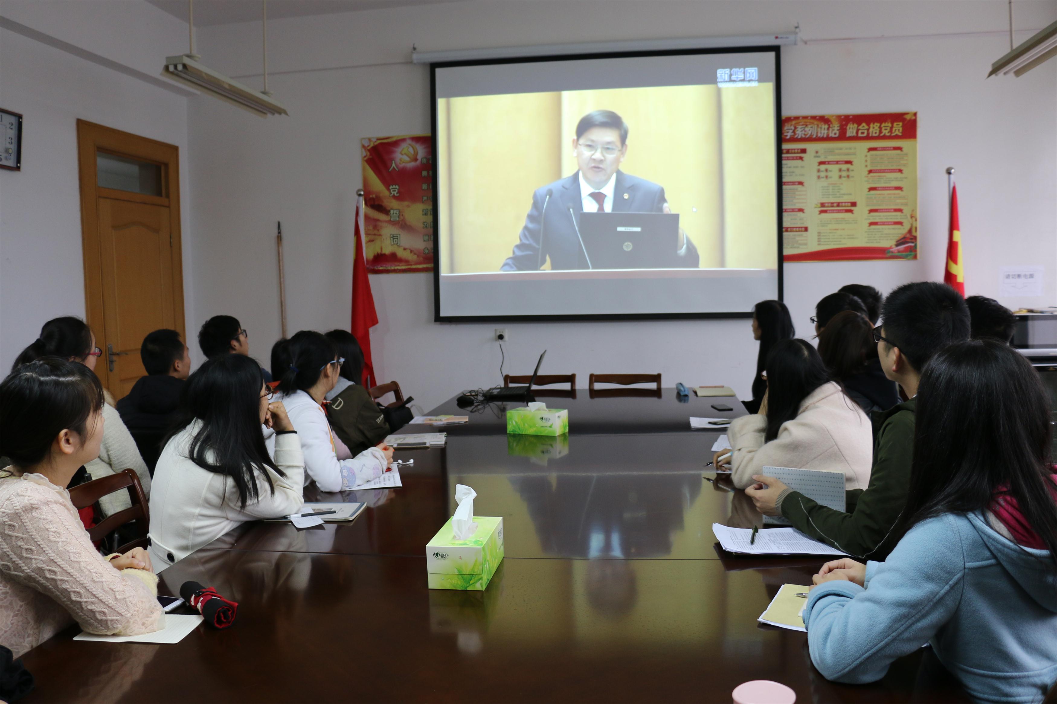 11月14号下午,在环工公司行政楼三楼会议室,环工公司组织观看了“学习贯彻党的十九大精神”——2017年全国科学道德和学风建设宣讲教育报告会。环工公司全体研究生观看了此次报告会。