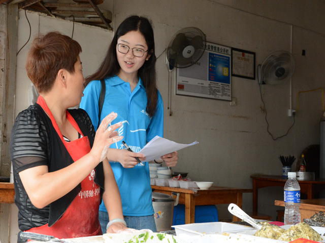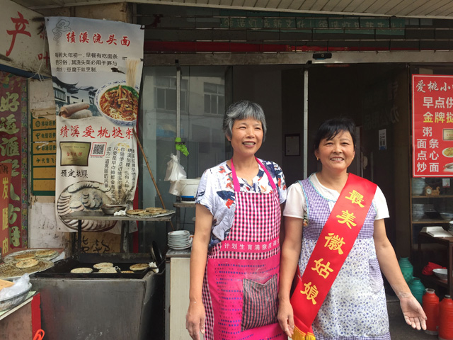调研过程中,团队沿街采访了第一届中国金牌旅游小吃“绩溪挞粿”制作比赛的金奖手艺人——“最美徽姑娘”及金牌商家。与挞粿制作金奖手艺人近距离接触,详细地询问了关于挞粿的制作工艺流程。并与商家老板亲切交流了关于挞粿的销售及保藏。并品尝了金牌商家最受欢迎的几款挞粿,让团队成员真切地感受到这一民间美食的独特风味。