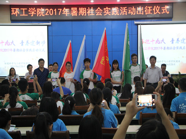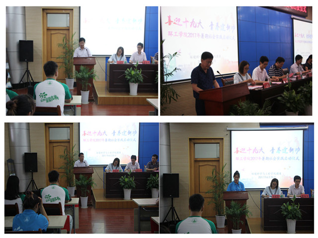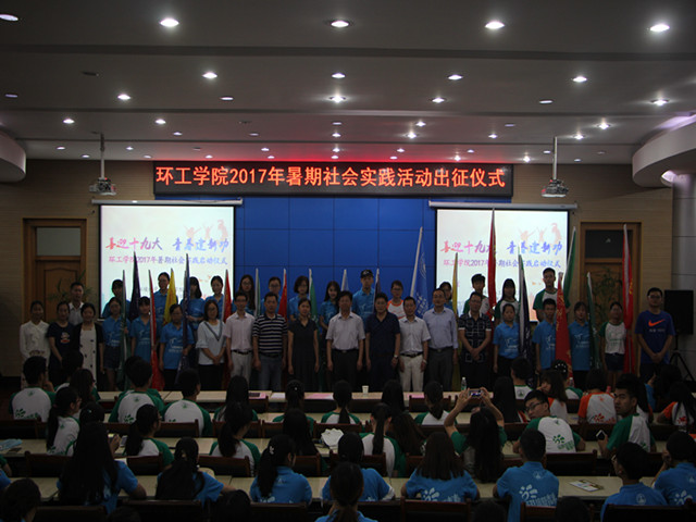 (本网讯\吕婵娟 陈亚力)喜迎十九大,青春建新功。6月25日晚,环工公司在花津校区会议中心第三报告厅隆重举办暑期“三下乡”社会实践活动启动仪式。公司全体党政领导班子、社会实践思政指导老师管月飞、公司各专业负责人及全体专兼职辅导员、暑期社会实践团队全体队员参加了启动仪式。仪式由公司党委副书记杨友谊主持。